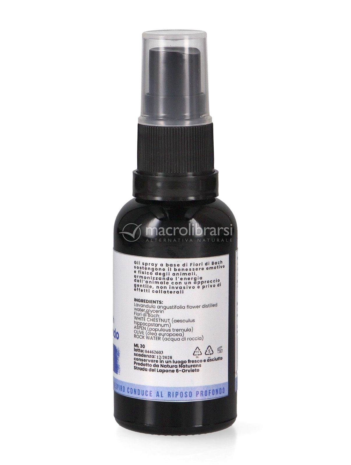 La miscela di fiori di Bach e Acqua Monofloreale di Lavanda Sonno Profondo è stata studiata per cani e gatti che faticano a rilassarsi durante le ore notturne.