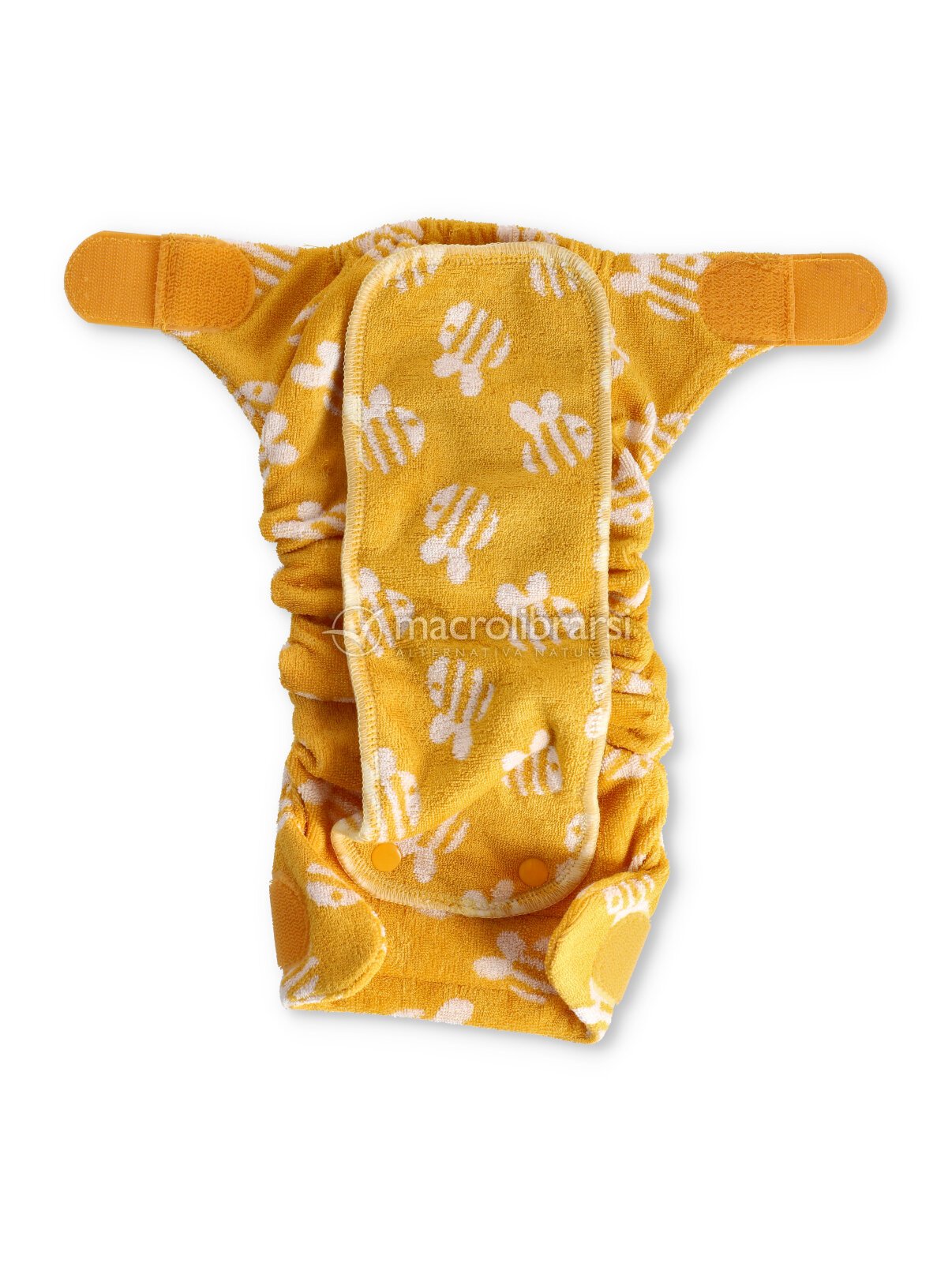 Pannolino lavabile in stoffa, realizzato in viscosa di bambù lavorata a maglia con nucleo assorbente in microfibra.