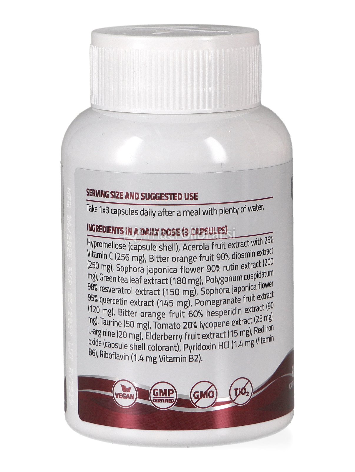 I benefici dei flavonoidi vegetali si uniscono alle proprietà di vitamine antiossidanti in una formulazione unica, pensata per sostenere il benessere del cuore e del circolo sanguigno.