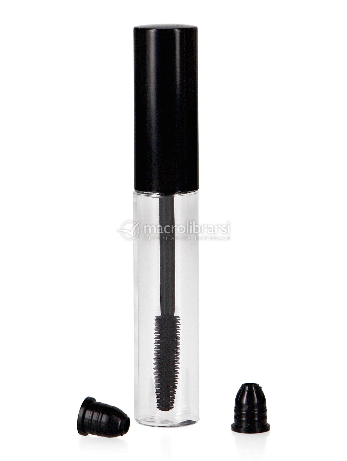 Flaconcino trasparente per mascara con tappo nero lucido, ideale per conservare mascara, trattamenti per le ciglia e le sopracciglia e gel colorati per capelli.