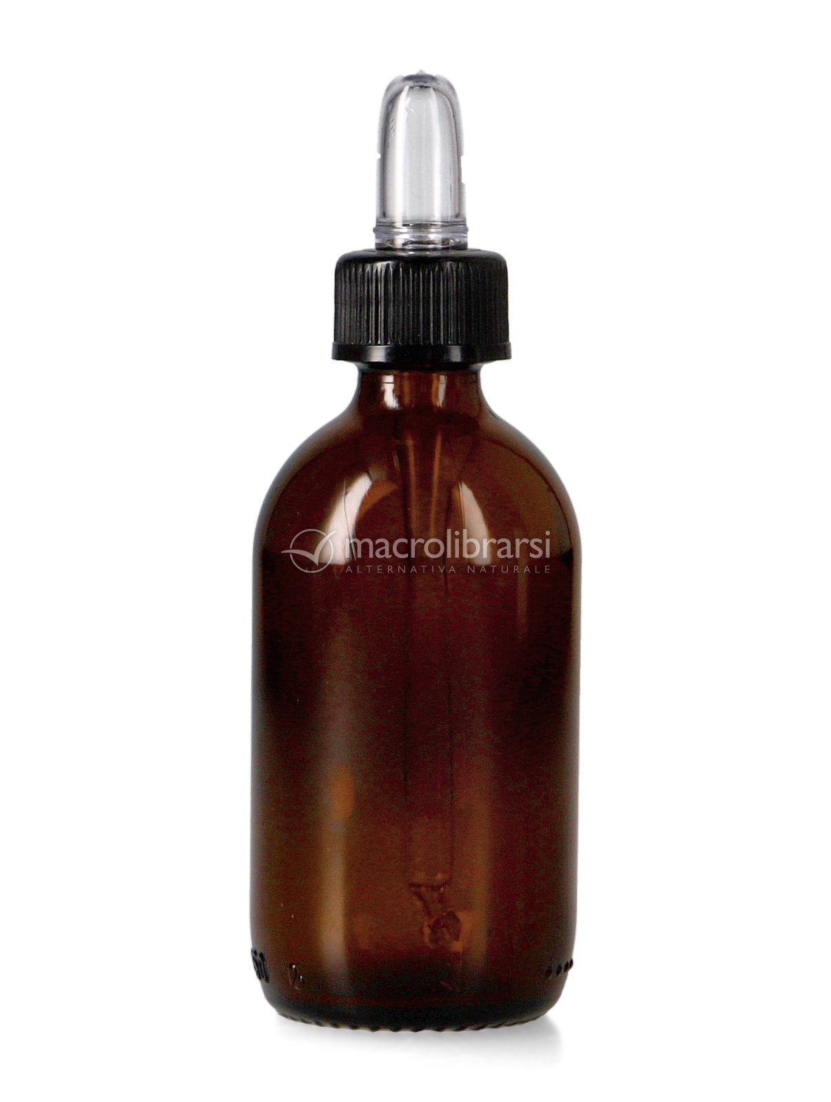 Contenitore in vetro scuro con pipetta erogatrice per prodotti farmaceutici e preparazioni galeniche.