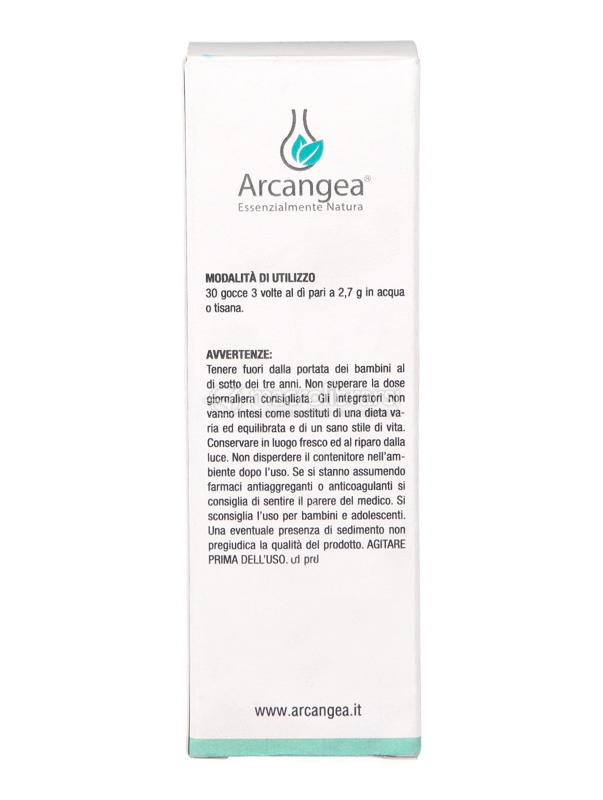 | Avvertenze | Tenere fuori dalla portata dei bambini al di sotto dei tre anni. Non superare la dose giornaliera consigliata. Gli integratori non vanno intesi come sostituti di una dieta varia ed equilibrata e di un sano stile di vita. Conservare in luogo fresco ed al riparo dalla luce. Non disperdere il contenitore nell'ambiente dopo l'uso. Se si stanno assumendo farmaci antiaggreganti o anticoagulanti si sconsiglia di sentire il parere del medico. Si sconsiglia l'uso per bambini e adolescenti. Una eventuale presenza di sedimento non pregiudica la qualità del prodotto. |