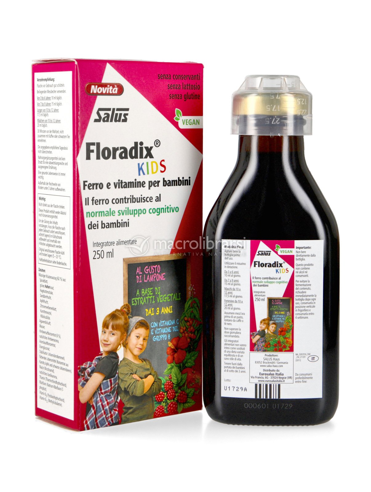 Piace proprio a tutti, il gusto lampone "camuffa" perfettamente il sapore degli altri ingredienti e quindi è facilmente somministrabile ai bambini. È un mix di vitamine indispensabili di cui tutti abbiamo bisogno e come tanti altri prodotti di questa marca sono vegan ok