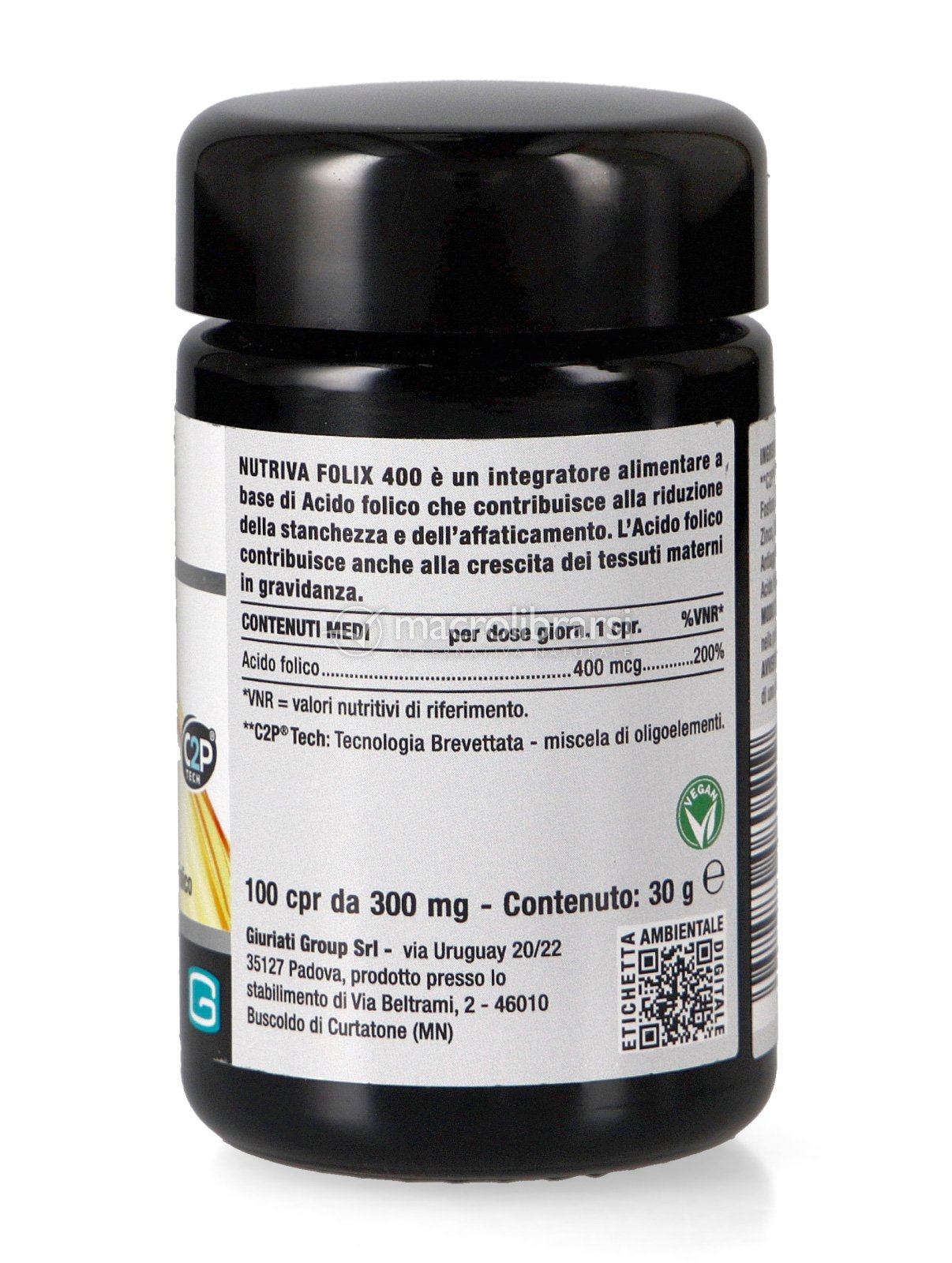 Ho iniziato ad assumere queste compresse di acido folico della marca Nutriva “Folix 400” da circa un mese e ho la sensazione che era proprio quello che mancava tra i miei integratori. Mi sento meno stanca e anche i vari disturbi legati al ciclo (nella fase pre mestruale che per me corrisponde alle 2 settimane che lo precedono) mi sembrano attenuati o spariti…probabilmente è presto per decretare un successo assoluto, ma sono sicura che un apporto di acido folico era necessario per me…probabilmente lo è per ogni donna. Questa marca l’ho trovata conveniente, tanto più che il flacone, in vetro scuro, ti permette di fare un trattamento di ben 100 giorni! Approvato.