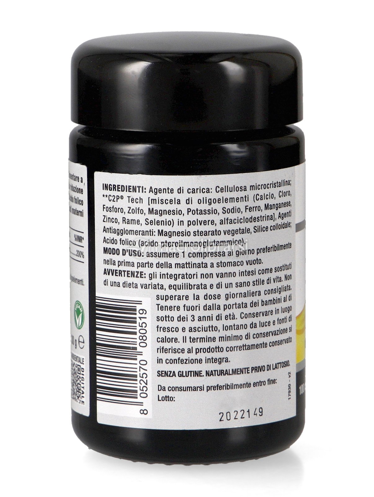 Contiene anche C2P® Tech una miscela di oligoelementi (Calcio, Cloro, Fosforo, Zolfo, Magnesio, Potassio, Sodio, Ferro, Manganese, Zinco, Rame, Selenio) utili per rivitalizzare l'organismo.