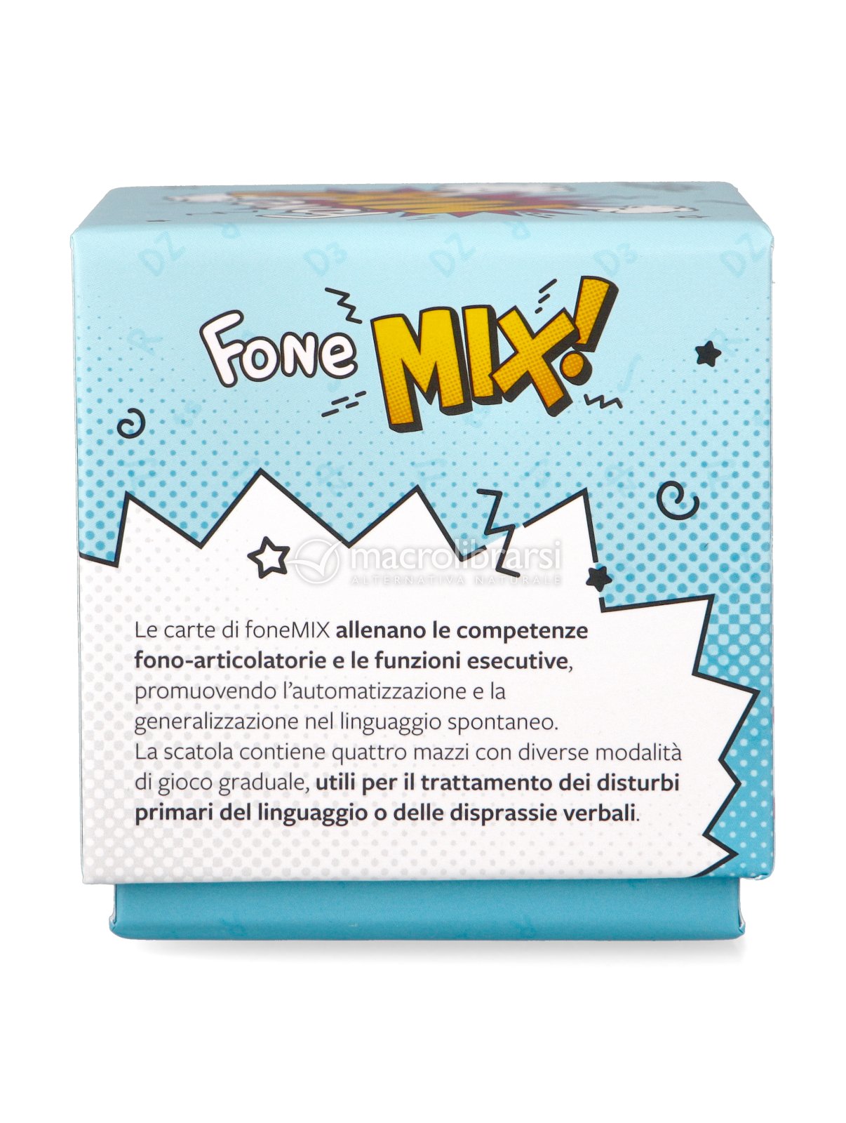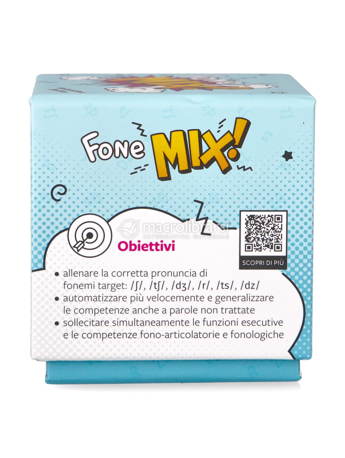 FoneMIX è uno strumento didattico divertente e coinvolgente progettato per allenare le competenze fono-articolatorie e le funzioni esecutive (memoria di lavoro, attenzione focalizzata, pianificazione, inibizione della risposta, velocità di reazione, flessibilità e autoregolazione emotiva) nei bambini e nelle bambine dai 4 anni.