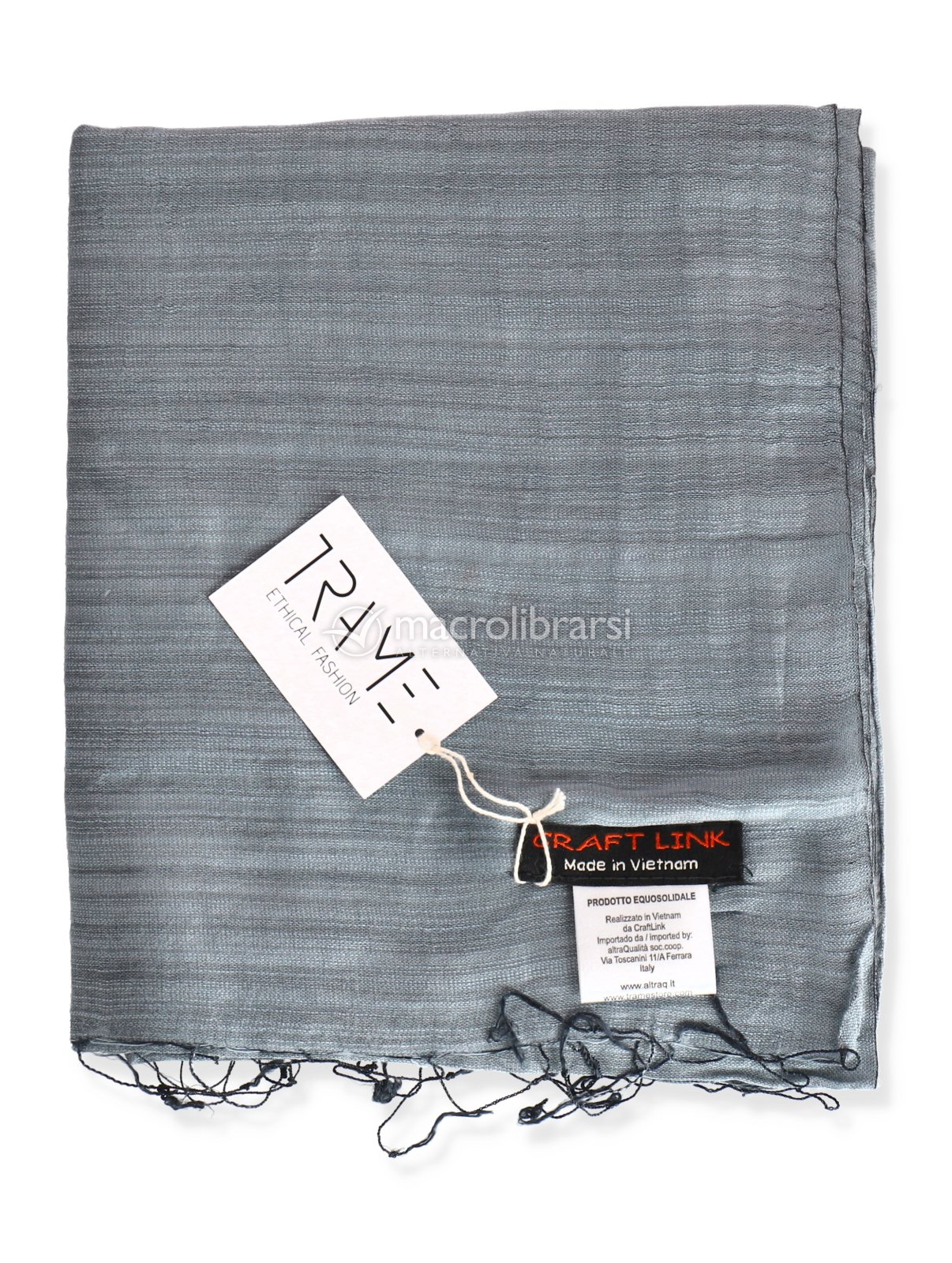 La sciarpa Blu Ardesia in misto seta e cotone, lavorata a telaio manuale, è un accessorio versatile e raffinato, perfetto per completare il tuo look durante le mezze stagioni.
