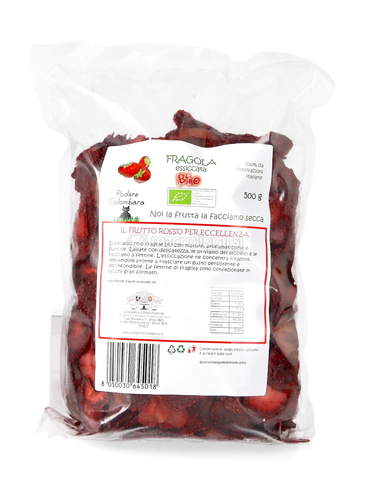 I prodotti Podere Colombara secondo me sono molto buoni. Le fragole essiccate sono rosse e profumate e hanno un sapore così intenso che basta aggiungerne poche per arricchire meravigliosamente lo yogurt. Sono buone anche da mangiare al naturale ma se si ha un poco di pazienza vale la pena farle ammorbidire qualche minuto nello yogurt bianco. Consigliate.