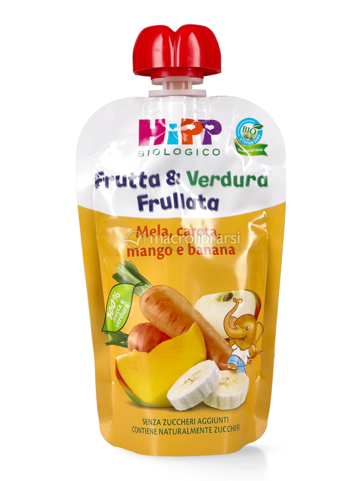 Come far mangiare frutta e verdura ai bambini ? Con il frullato della hipp ! Mio figlio non mangerebbe mai carote e patate dolci senza questa merenda . Gli piace il sapore e lo vuole sempre a merenda