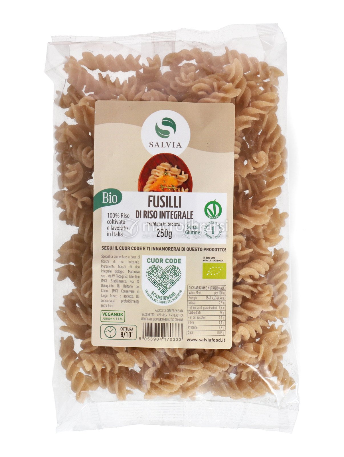 I fusilli di riso integrale di Salvia, gustosa e senza glutine, sono realizzati unicamente con riso biologico (100% coltivato, lavorato in Italia) e acqua minerale naturale.