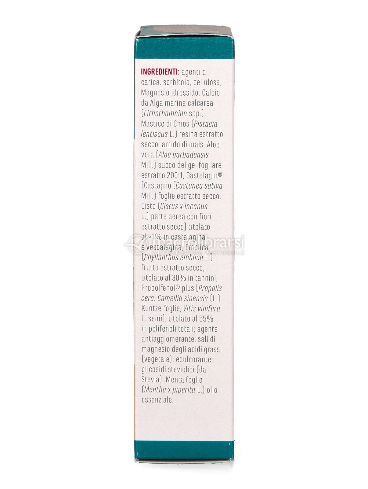 | Disclaimer | Non superare la dose giornaliera consigliata. Gli integratori alimentari non vanno intesi come sostituti di una dieta variata ed equilibrata. Tenere fuori dalla portata dei bambini al di sotto dei tre anni. Non utilizzare in gravidanza e nei bambini o comunque per periodi prolungati senza sentire il parere del medico. Conservare in luogo asciutto e lontano da fonti di calore. Richiudere la confezione dopo l'uso. Macrolibrarsi ricorda l'importanza di seguire uno stile di vita sano e un'alimentazione variata ed equilibrata. |