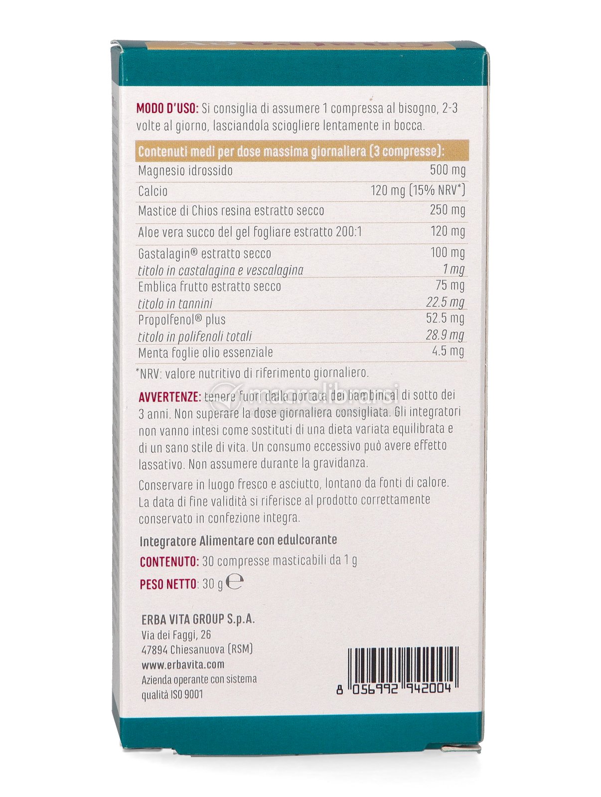 | Confezione | 30 compresse masticabili (da 1 g cad.) |