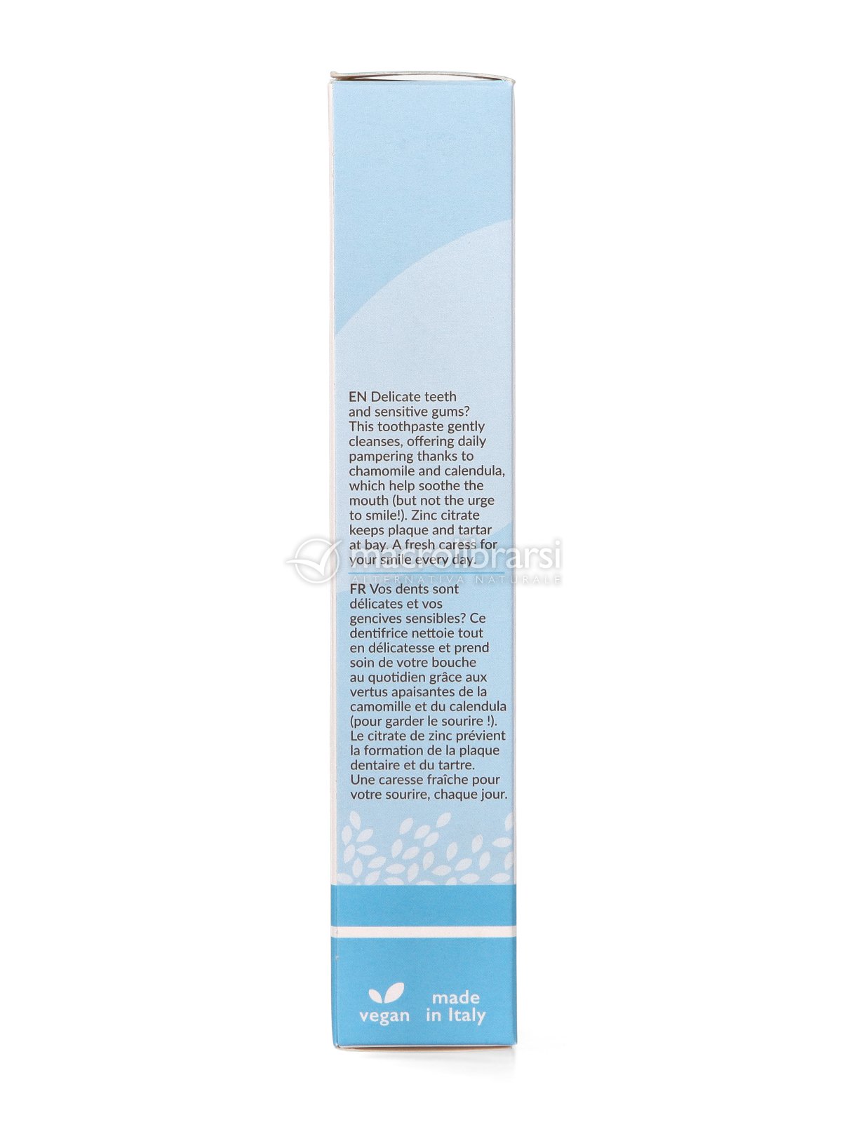 Non brucia, non aggredisce lo smalto dentale e grazie agli estratti biologici di Camomilla e Calendula svolge un effetto lenitivo e calmante sulle gengive sensibili.