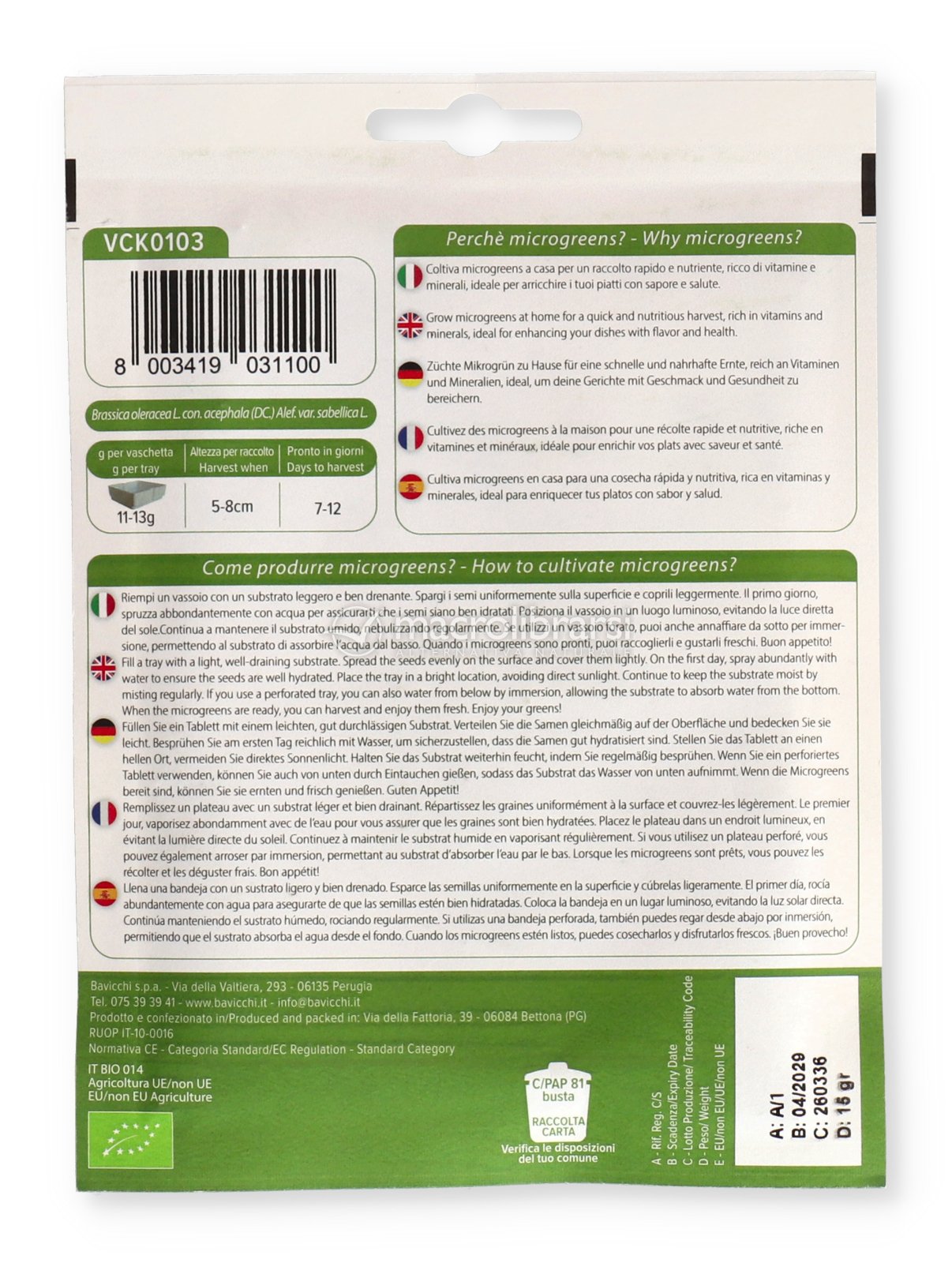 Ideale per chi desidera coltivare microgreens in casa, questa varietà si distingue per la crescita rapida, la resa generosa e il forte impatto estetico, perfetto per valorizzare ogni preparazione sia dal punto di vista del gusto sia della presentazione.
