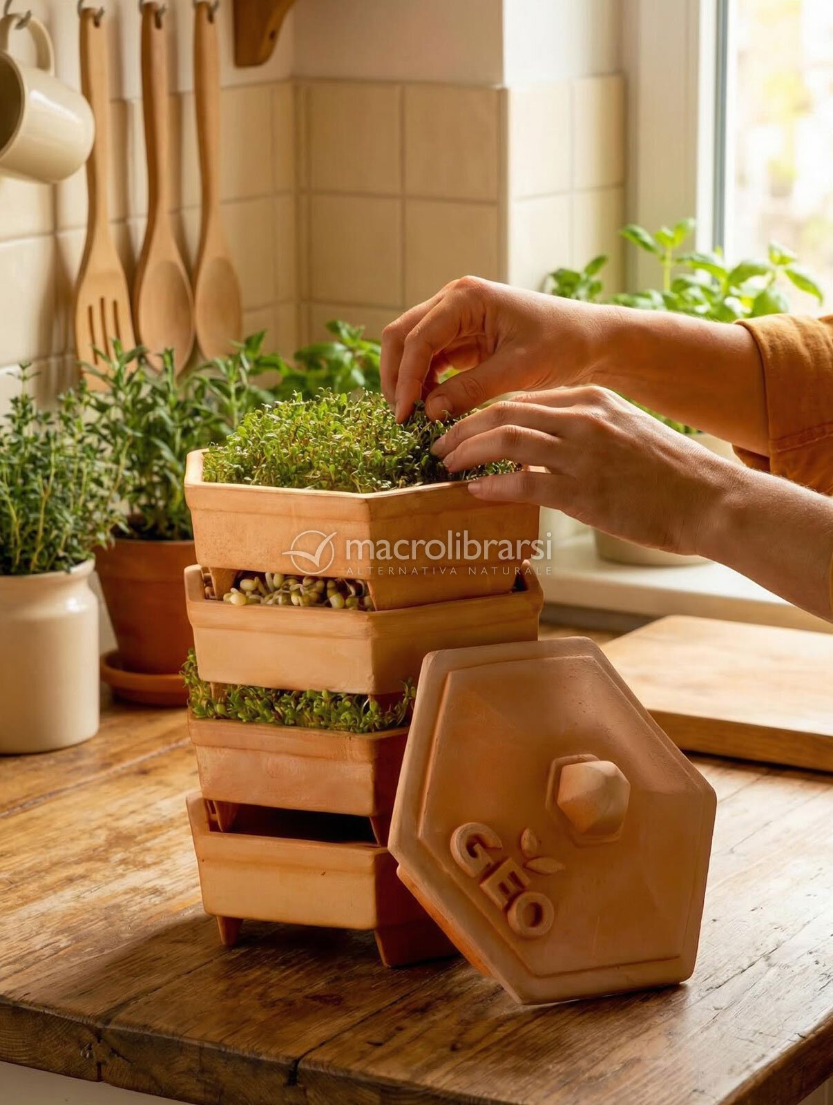 Uso questo germogliatore ogni settimana e ne apprezzo la semplicità d’uso e la bellezza discreta. La terracotta mantiene l’umidità giusta, evitando muffe, e i ripiani consentono di gestire bene luce e buio. I germogli crescono sani e vigorosi, e il risultato è soddisfacente già dopo pochi giorni. Inoltre, è un oggetto che sta bene anche in vista, il che lo rende un complemento piacevole oltre che utile. Basta un po’ di attenzione nella pulizia, ma nulla di complicato. Lo trovo un valido alleato quotidiano.
