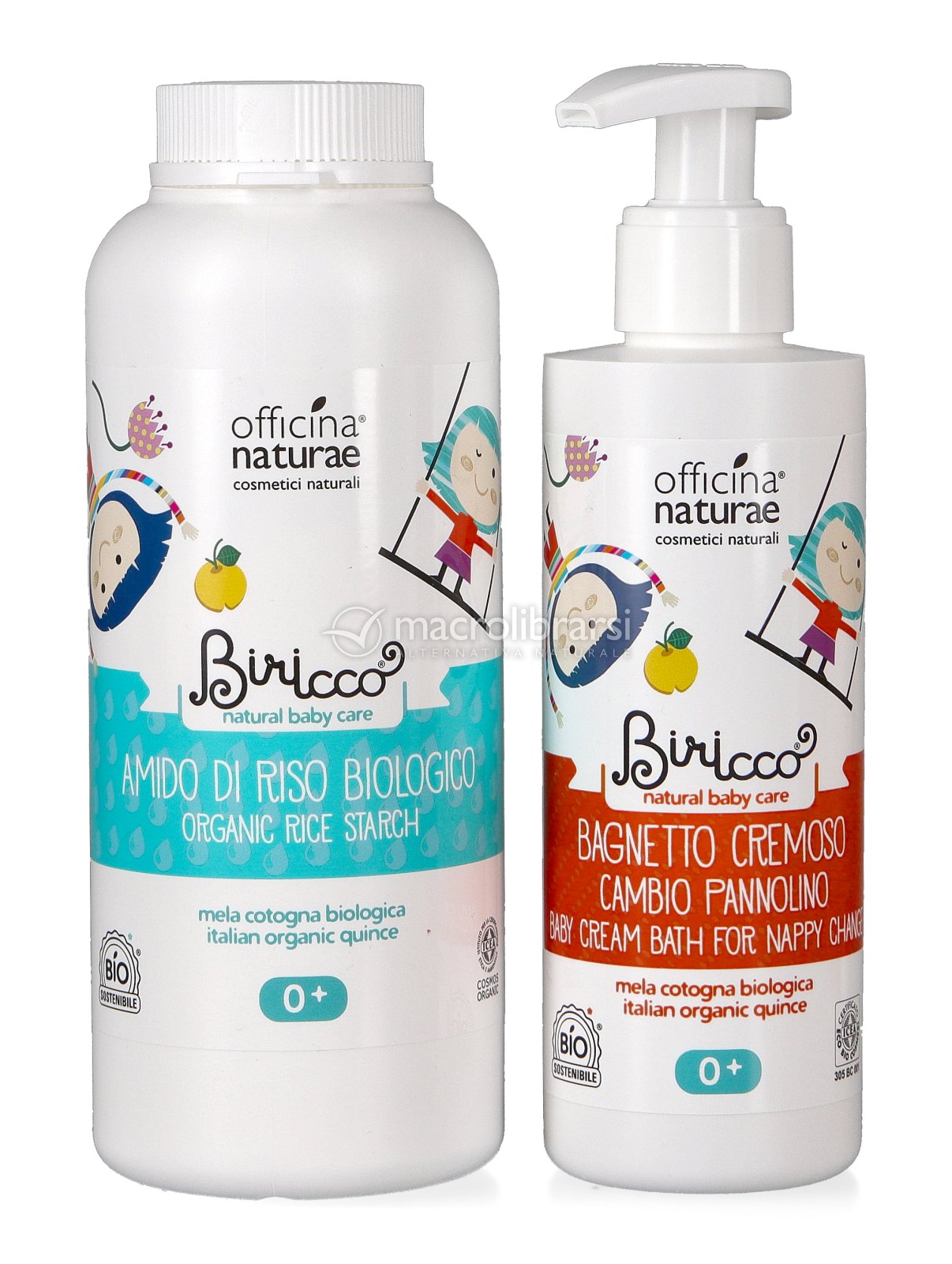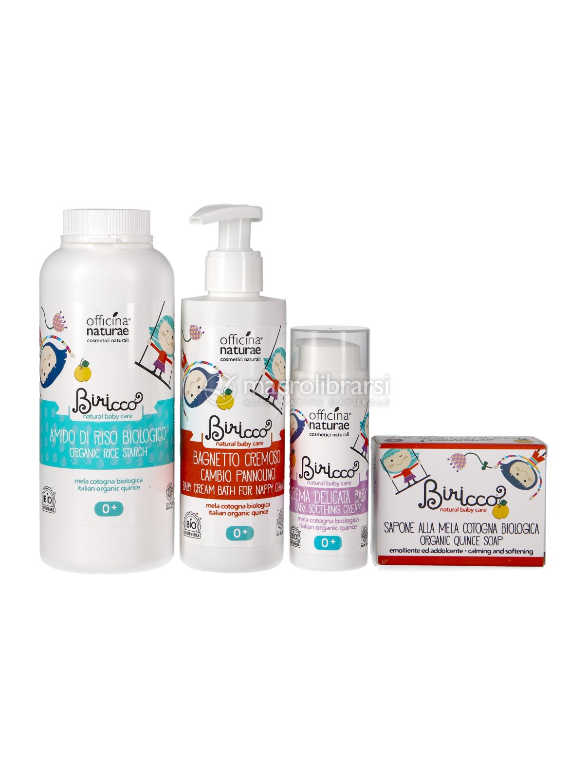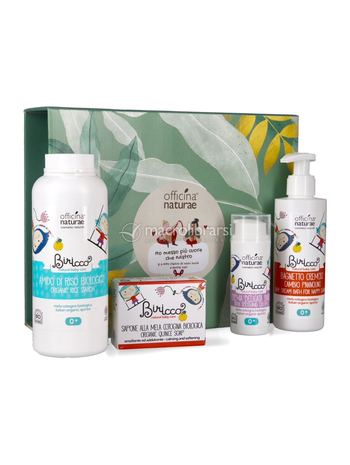 Gift Box Prime Coccole Biricco 0+ contiene gli indispensabili per la cura della pelle dei più piccini della linea Biricco di Officina Naturae: