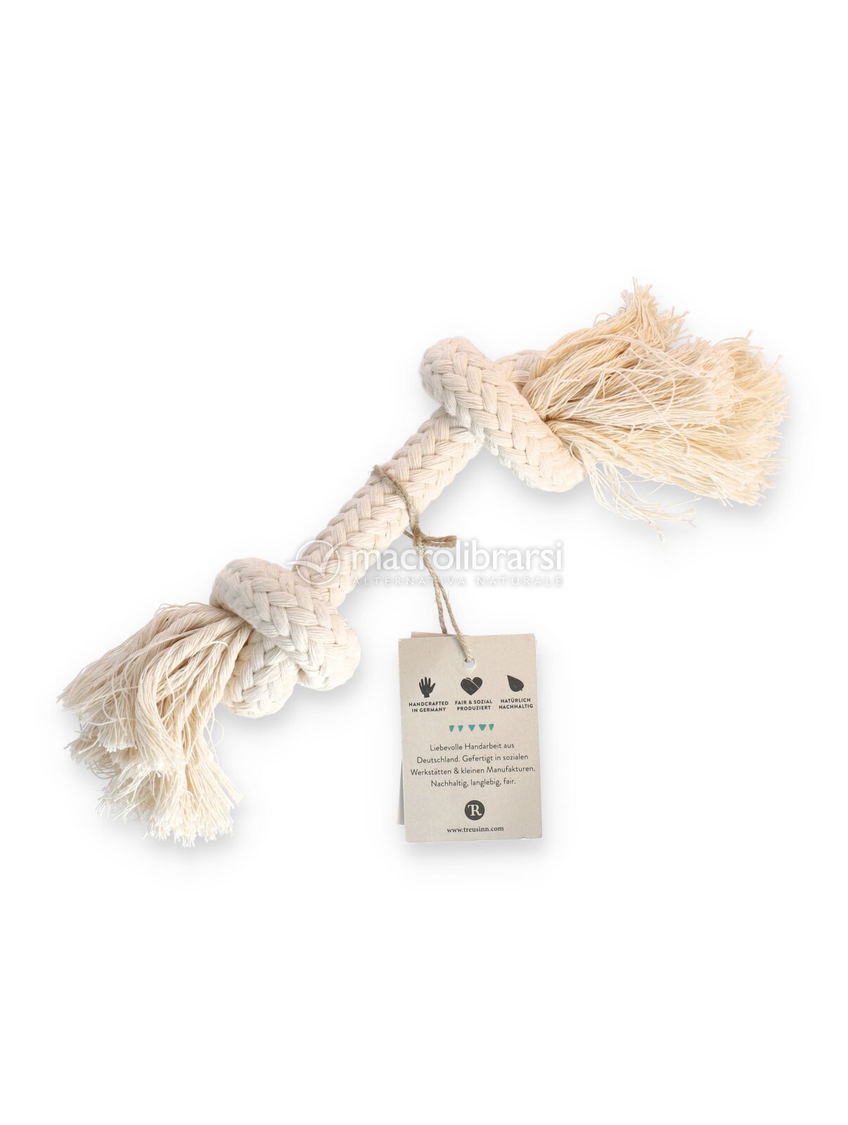 Realizzato a mano con puro cotone biologico certificato GOTS, questo gioco è la risposta ideale per i proprietari che desiderano un accessorio atossico, ecologico e delicato sulla bocca del proprio amico a 4 zampe.