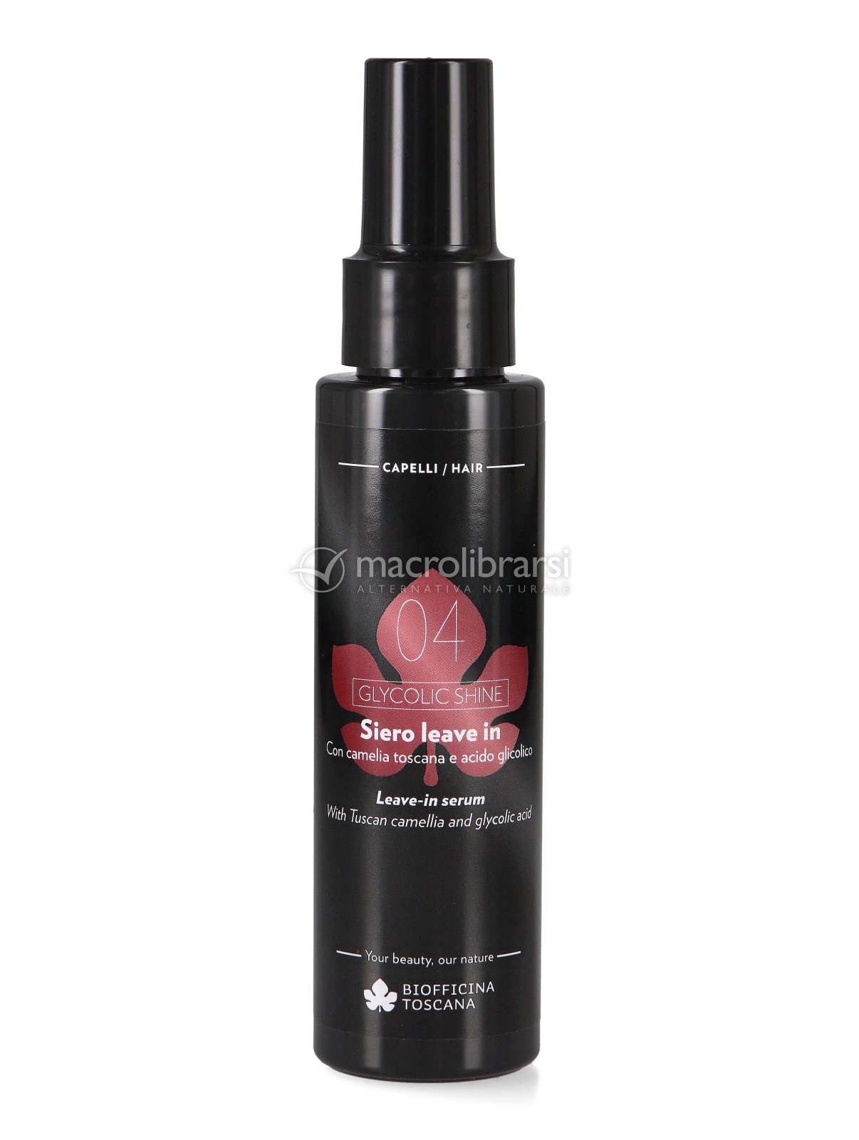 Ricco di attivi come l'oleolito di camelia toscana, fitocheratina da canapa e riso, pantenolo e aminoacidi di origine vegetale, il Siero Leave-In Glycolic Shine di Biofficina Toscana contiene inoltre acido glicolico all'1%, che permette di sigillare le squame, diminuendo la porosità ed aumentando visibilmente la lucentezza del capello, per un effetto specchio lucido e sano.
