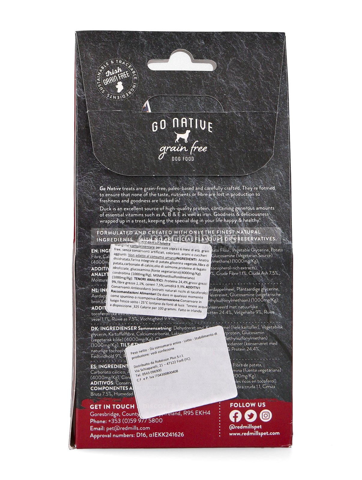 - Solo ingredienti locali: Go Native utilizza solo anatra irlandese di provenienza tracciata, garantendo una freschezza e una qualità nutrizionale che si percepisce appena si apre la confezione.
