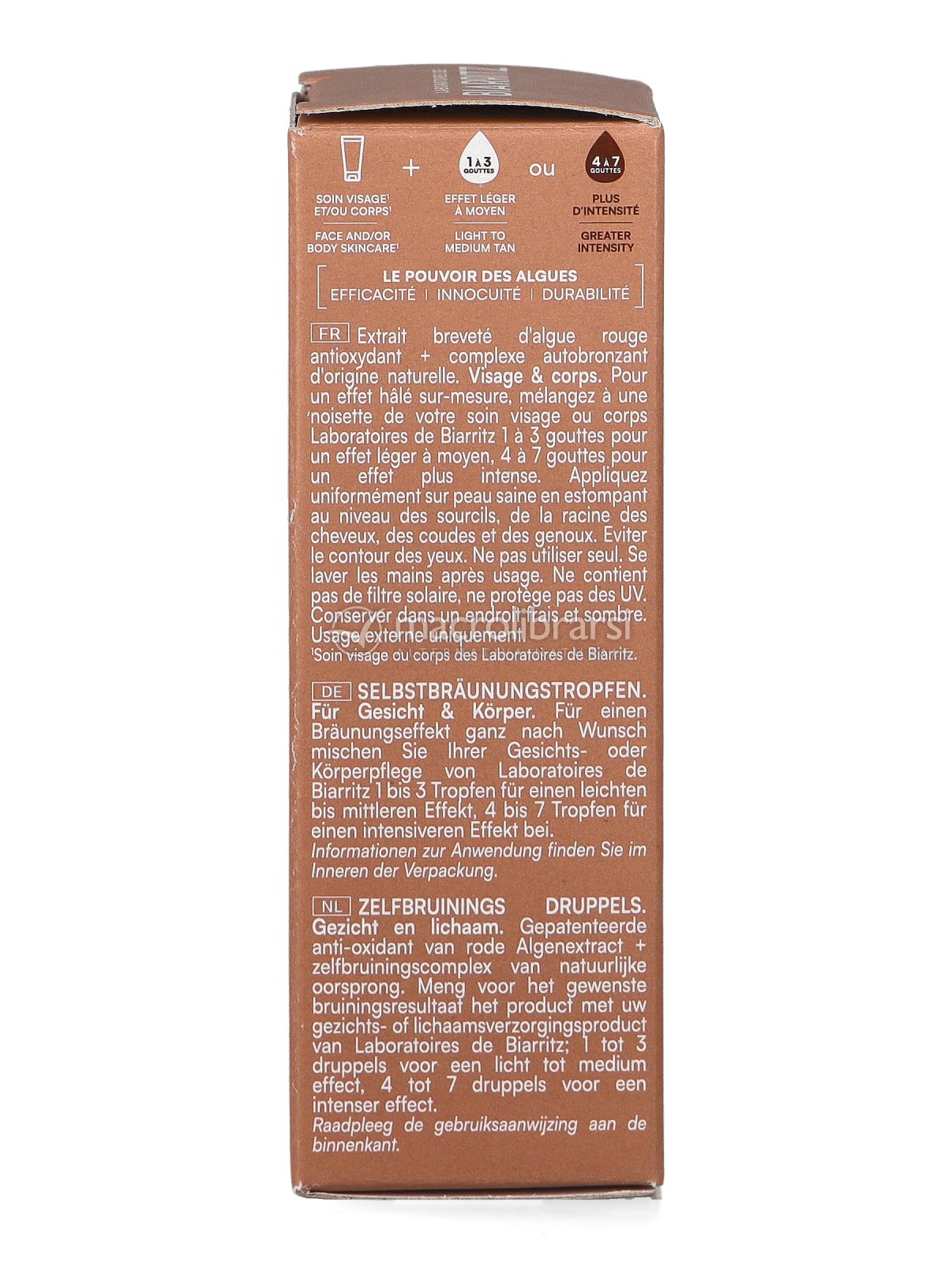 Grazie alle gocce autoabbronzanti Laboratoires de Biarritz, potrai godere dei benefici della tua routine di cura della pelle, aggiungendo al contempo un delicato tocco di abbronzatura dorata.