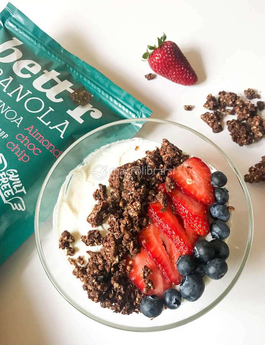 Bett`r Granola con mandorle e gocce di cioccolato rende la colazione del mattino una golosità unica!