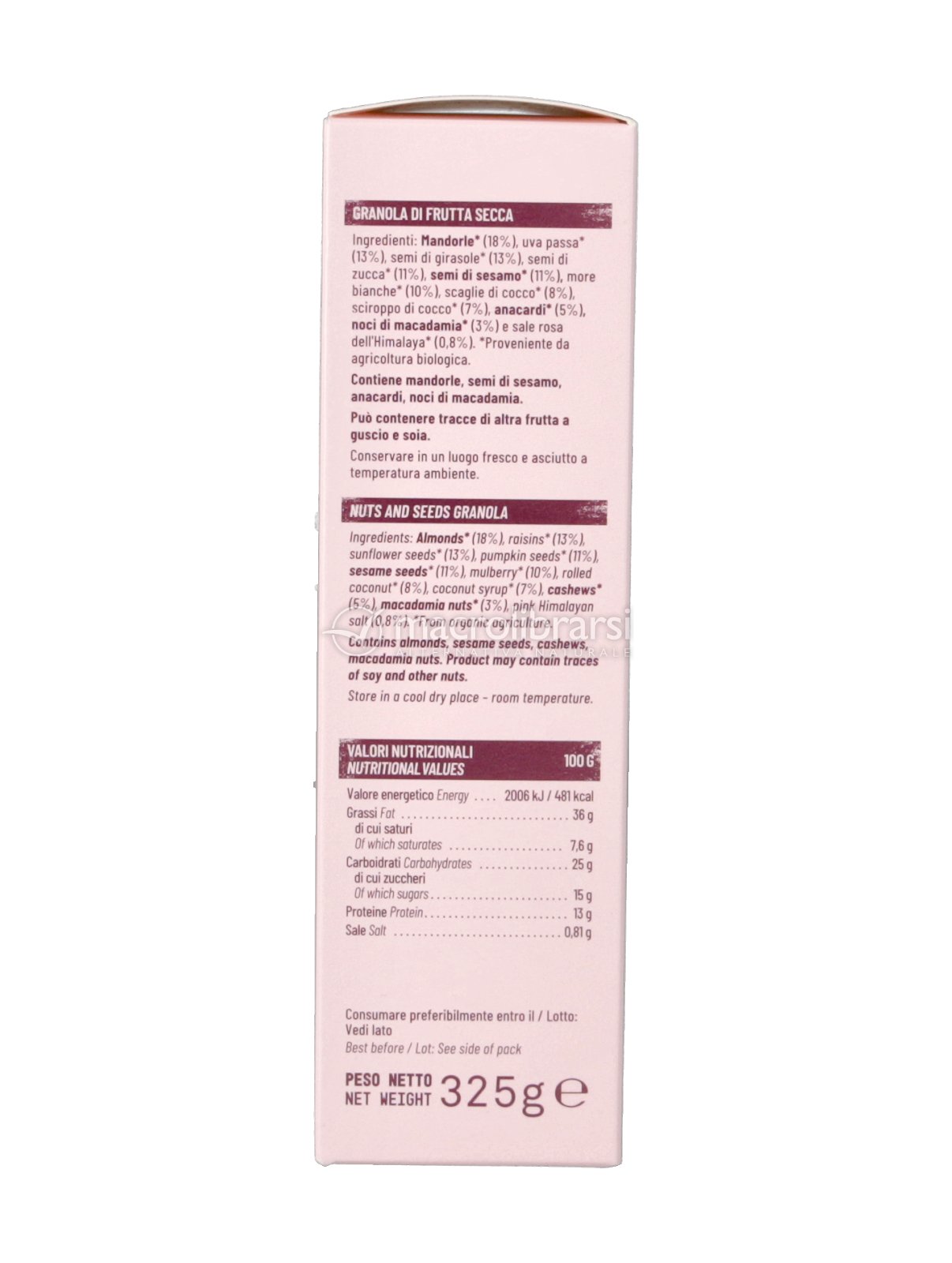 | Allergeni | Contiene mandorle, semi di sesamo, anacardi, noci di macadamia. Può contenere tracce di altra frutta con guscio e soia. |