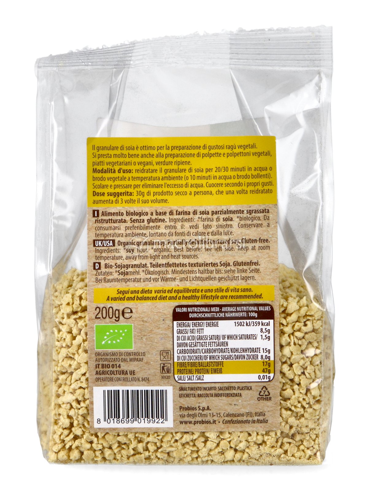 Il granulare di soia è perfetto per realizzare gustosi ragù vegani e piatti di ogni tipo. Provalo come base per polpette e polpettoni, o come ripieno per peperoni, pomodori e melanzane.