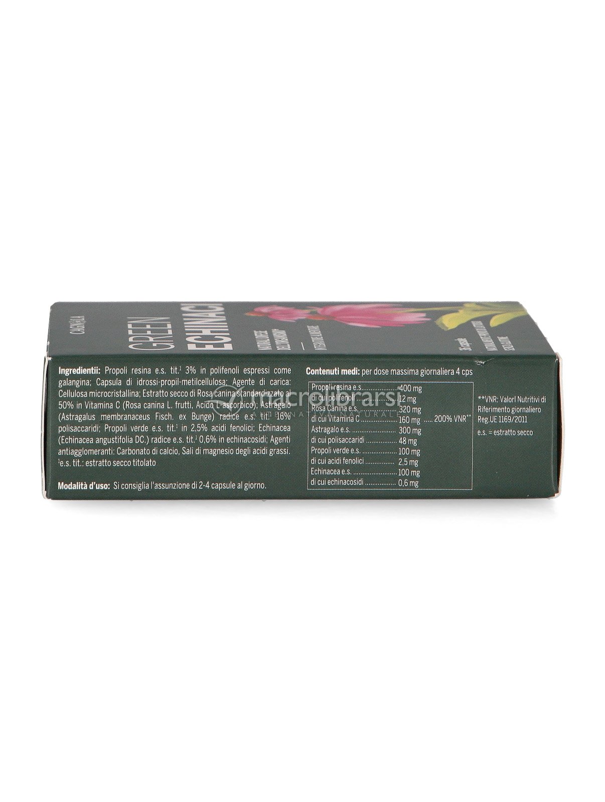 Green Echinaci è un integratore alimentare in capsule pensato per favorire le normali difese immunitarie dell’organismo, utile in prevenzione dei malanni stagionali, o in caso di stati di raffreddamento. Contiene:
