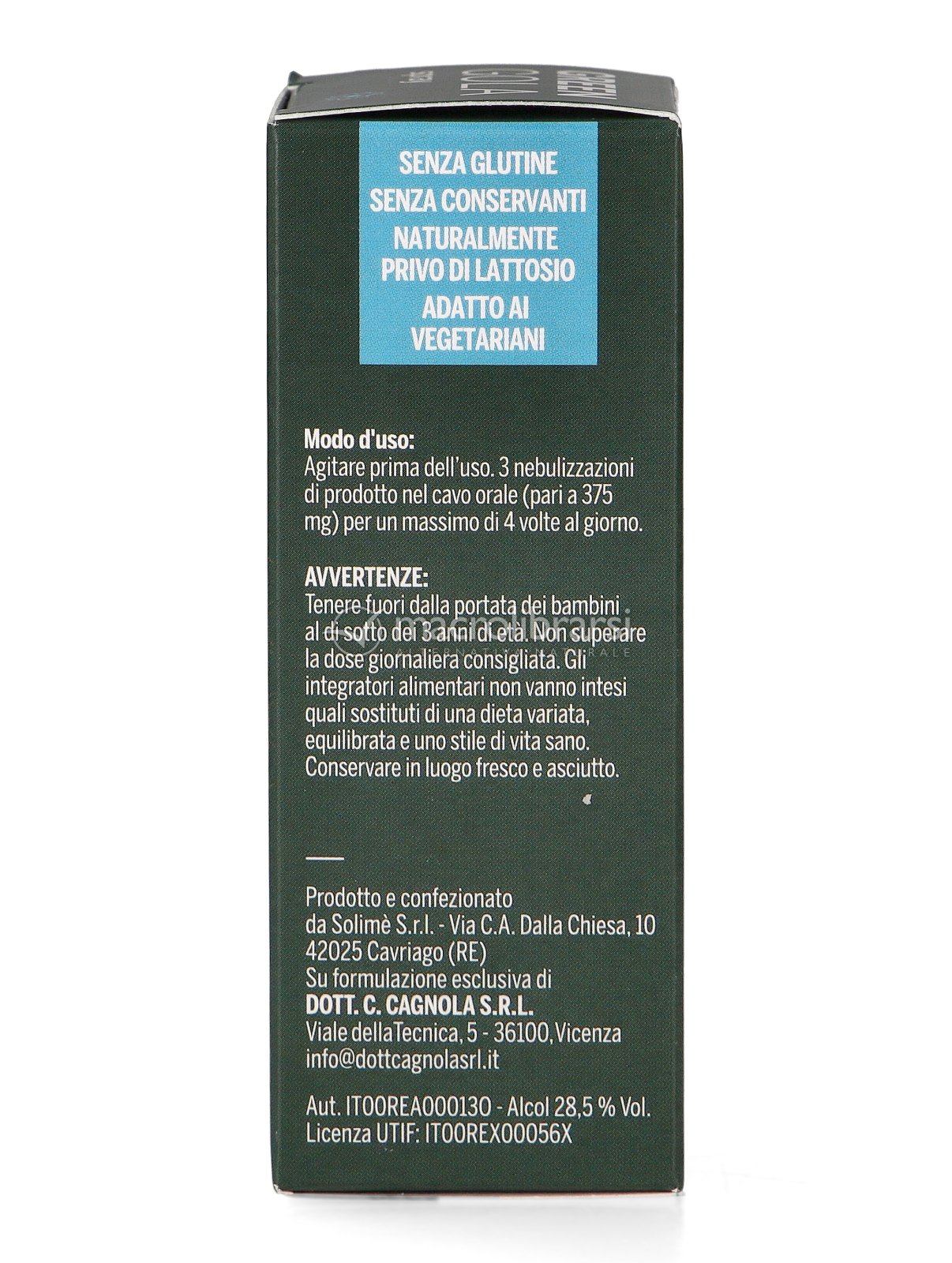 Effettuare 3 nebulizzazioni di prodotto nel cavo orale per un massimo di 4 volte al giorno. Agitare prima dell'uso.