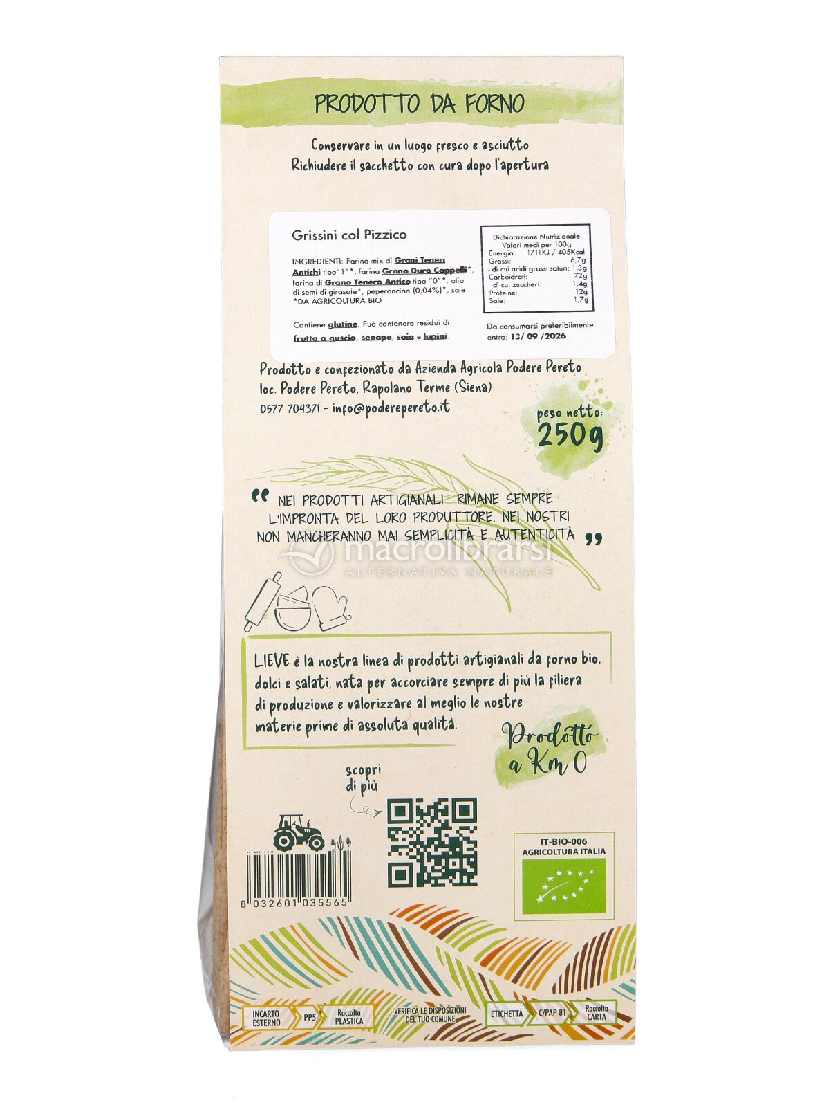 Croccanti, artigianali e leggermente piccanti: i Grissini col Pizzico biologici sono stirati a mano nel forno artigianale di Podere Pereto, con ingredienti semplici e selezionati.