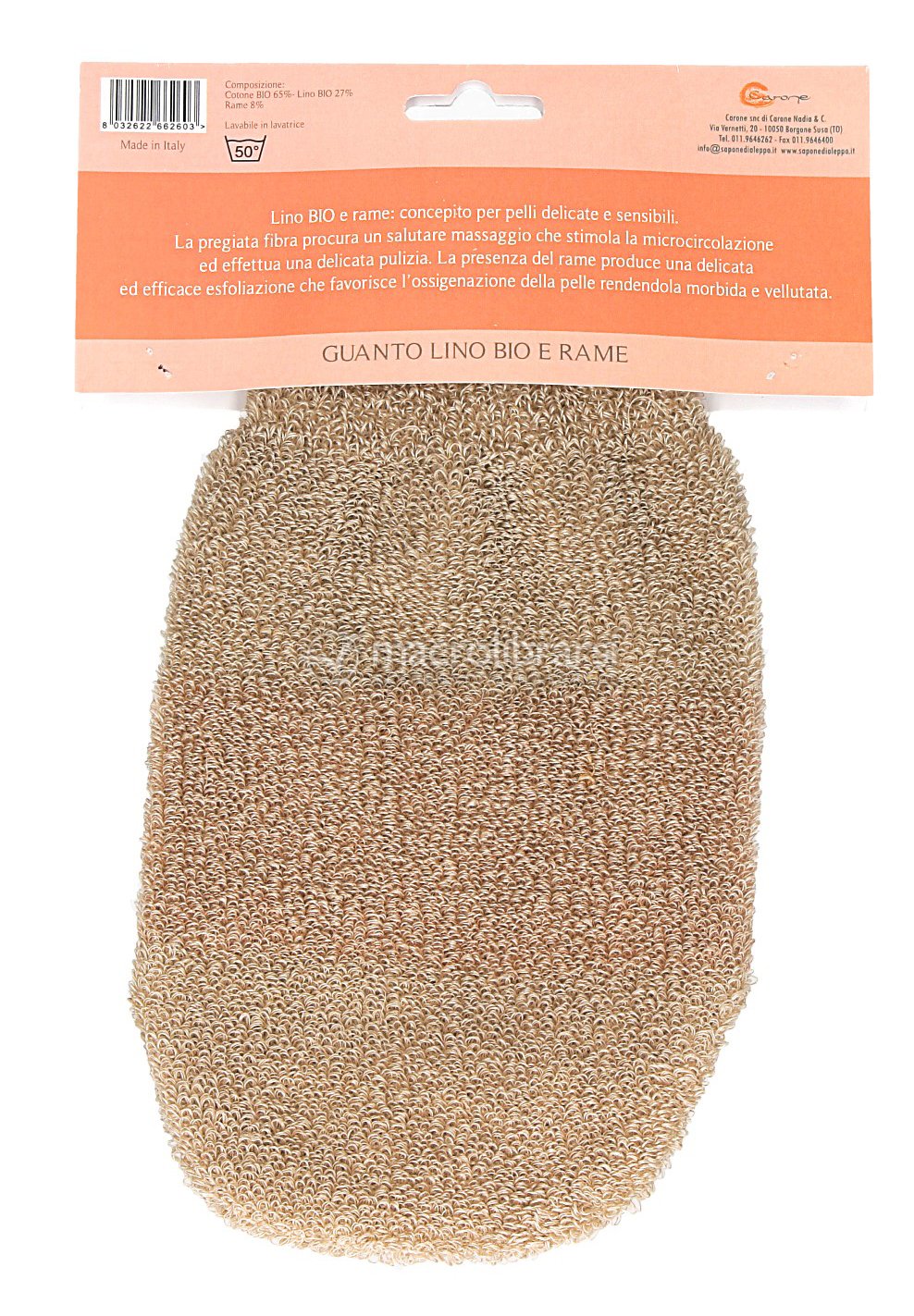 Stavo cercando una manopola da usare per la detersione del corpo durante la doccia, volevo qualcosa di particolare, ho visto questo guanto e mi ha incuriosita il fatto che è composta da due ottime fibre vegetali come il cotone e il lino così l'ho acquistato. Da nuovo prima di essere utilizzato appare bello grande, anche se la parte alta elasticizzata è un pò stretta per infilarci la mano, e dio ho una mano media tendenzialmente piccola, dopo il primo lavaggio il tessuto da cui è composto il guanto tende a restringersi e rimane tale anche dopo l'asciugatura, per quanto riguarda la detersione devo dire che è ottima grazie alla presenza del rame, la pelle rimane levigata e morbida.