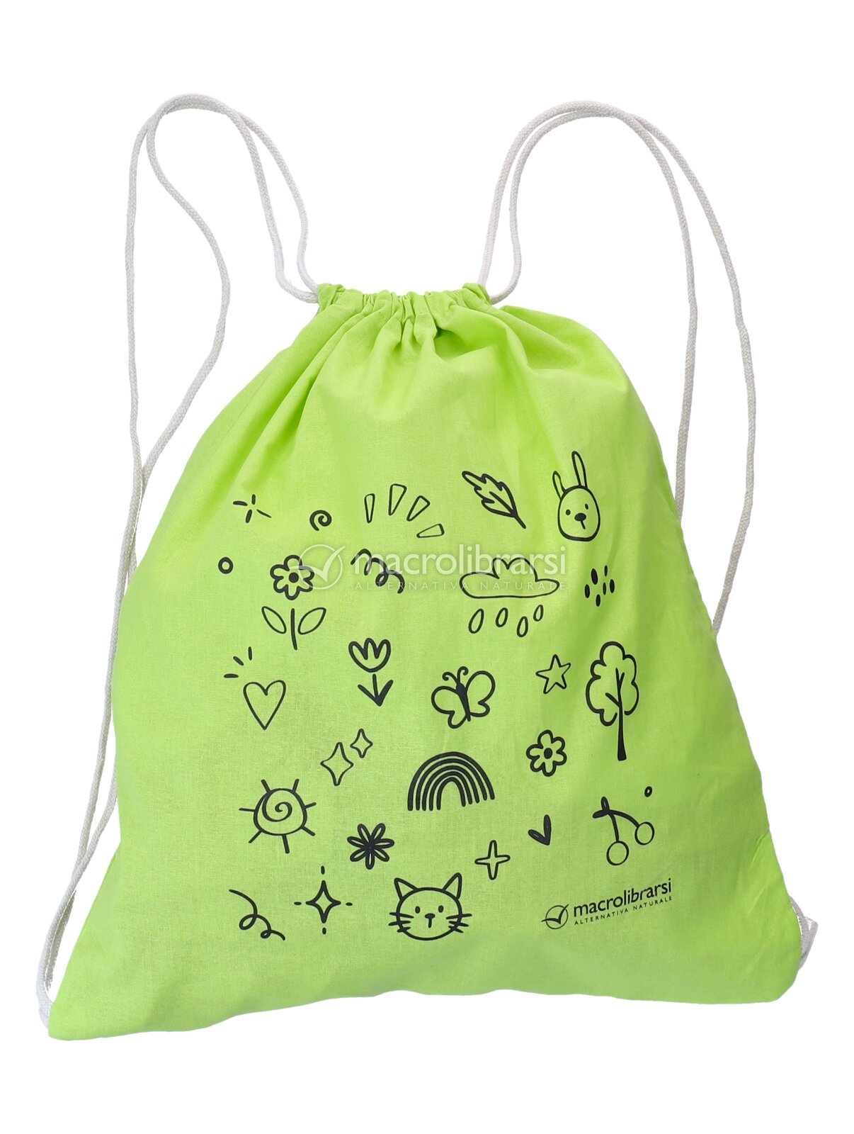 Zainetto verde in cotone, perfetto per la scuola, lo sport e il tempo libero.