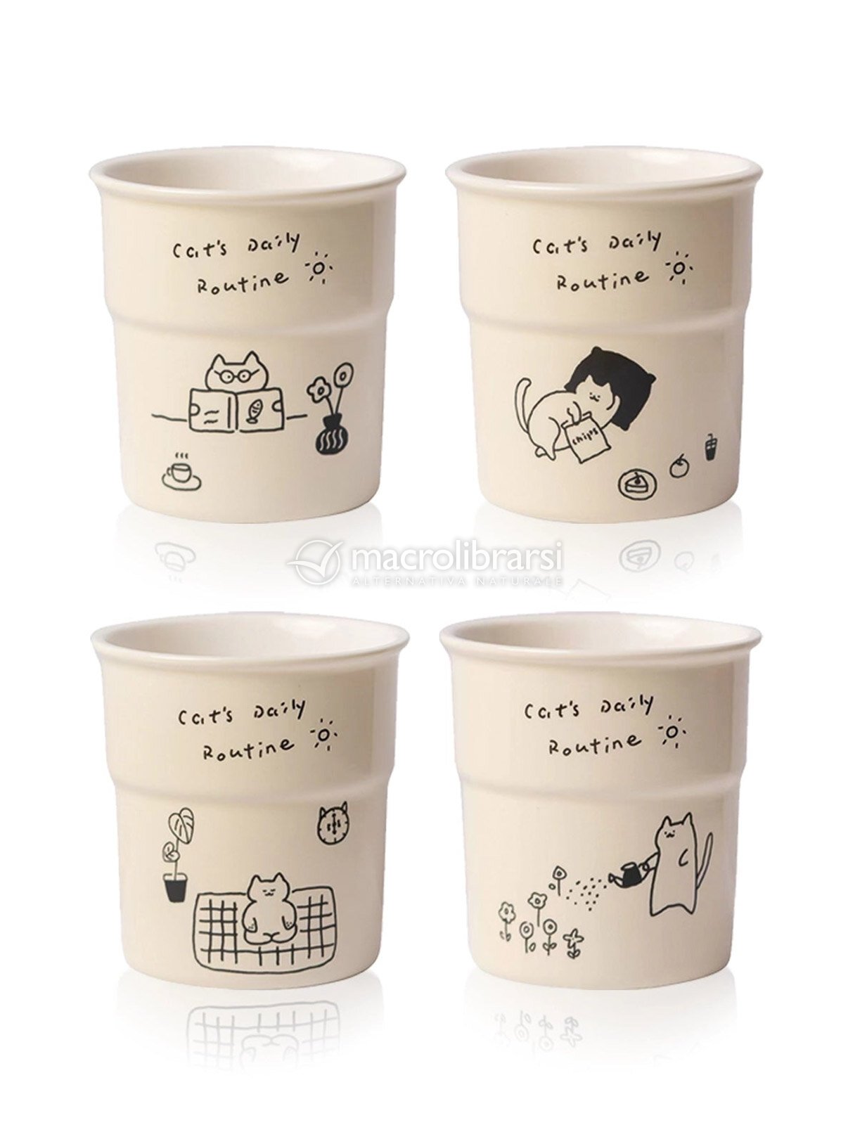 Handy Mug - Set 4 Tazze in Ceramica Cat's Daily Routine