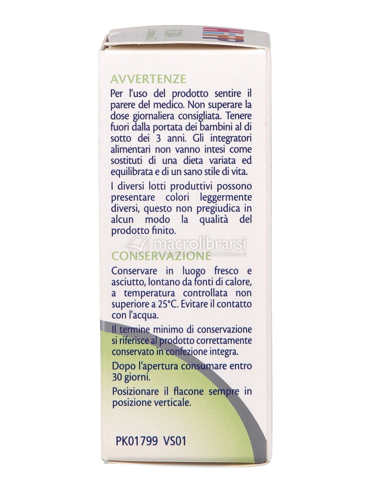 | Disclaimer | Non superare la dose giornaliera consigliata. Gli integratori alimentari non vanno intesi come sostituti di una dieta variata ed equilibrata. Tenere fuori dalla portata dei bambini al di sotto dei tre anni. Non utilizzare in gravidanza e nei bambini o comunque per periodi prolungati senza sentire il parere del medico. Conservare in luogo asciutto e lontano da fonti di calore. Richiudere la confezione dopo l'uso. Macrolibrarsi ricorda l'importanza di seguire uno stile di vita sano e un'alimentazione variata ed equilibrata. |