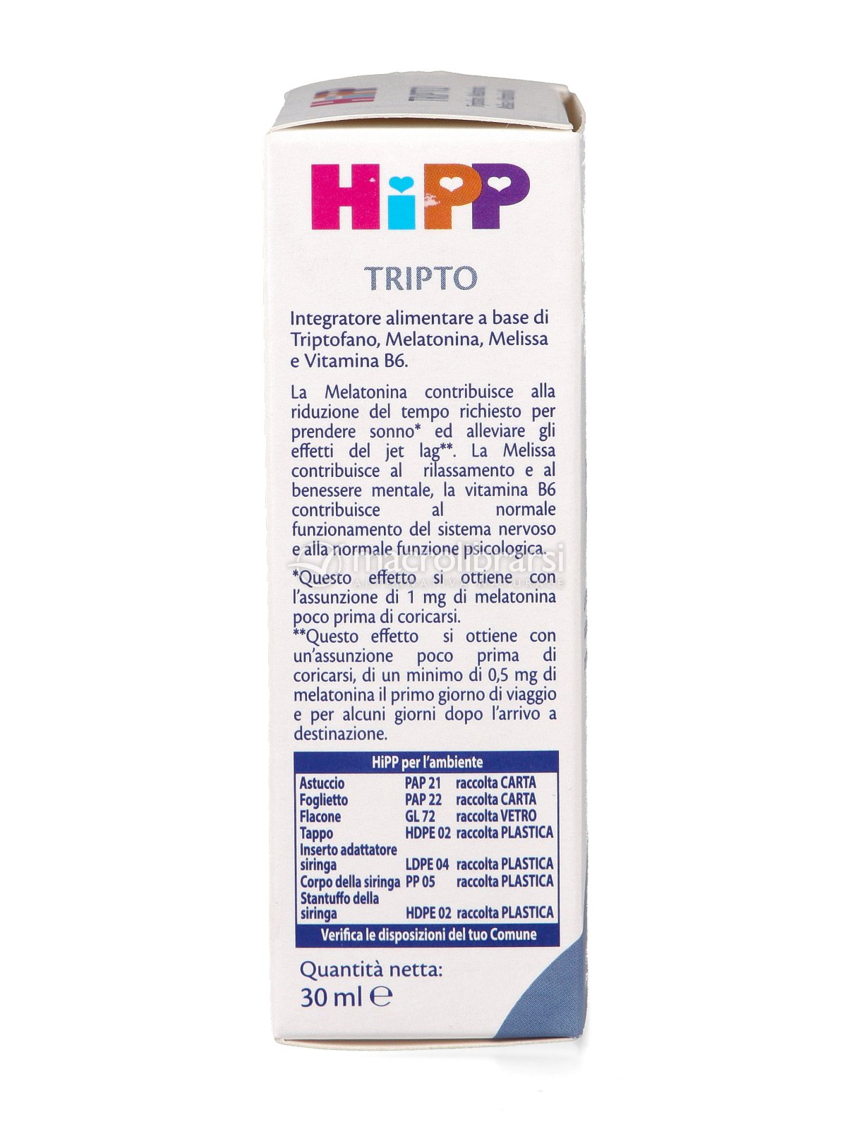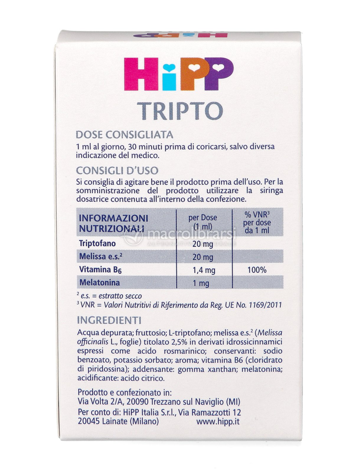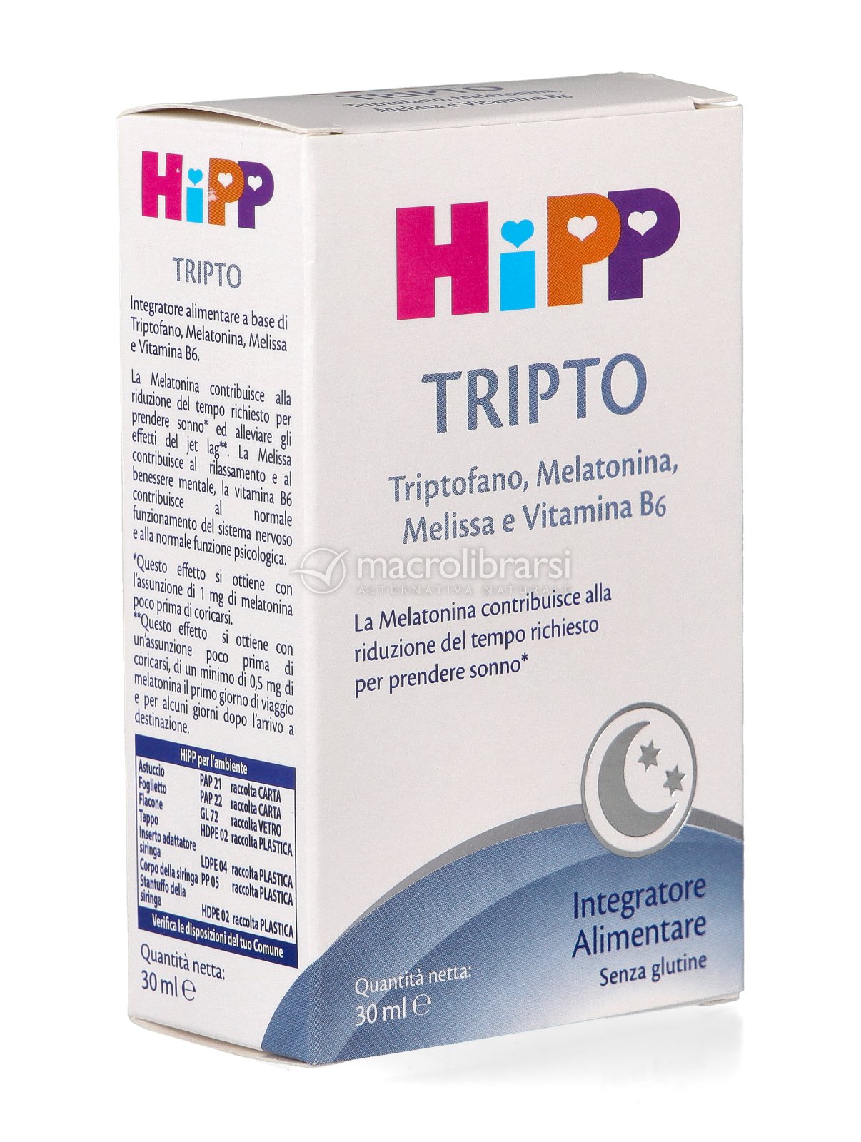 Hipp Tripto è un integratore alimentare senza glutine pensato per favorire il sonno dei bambini. Contiene: