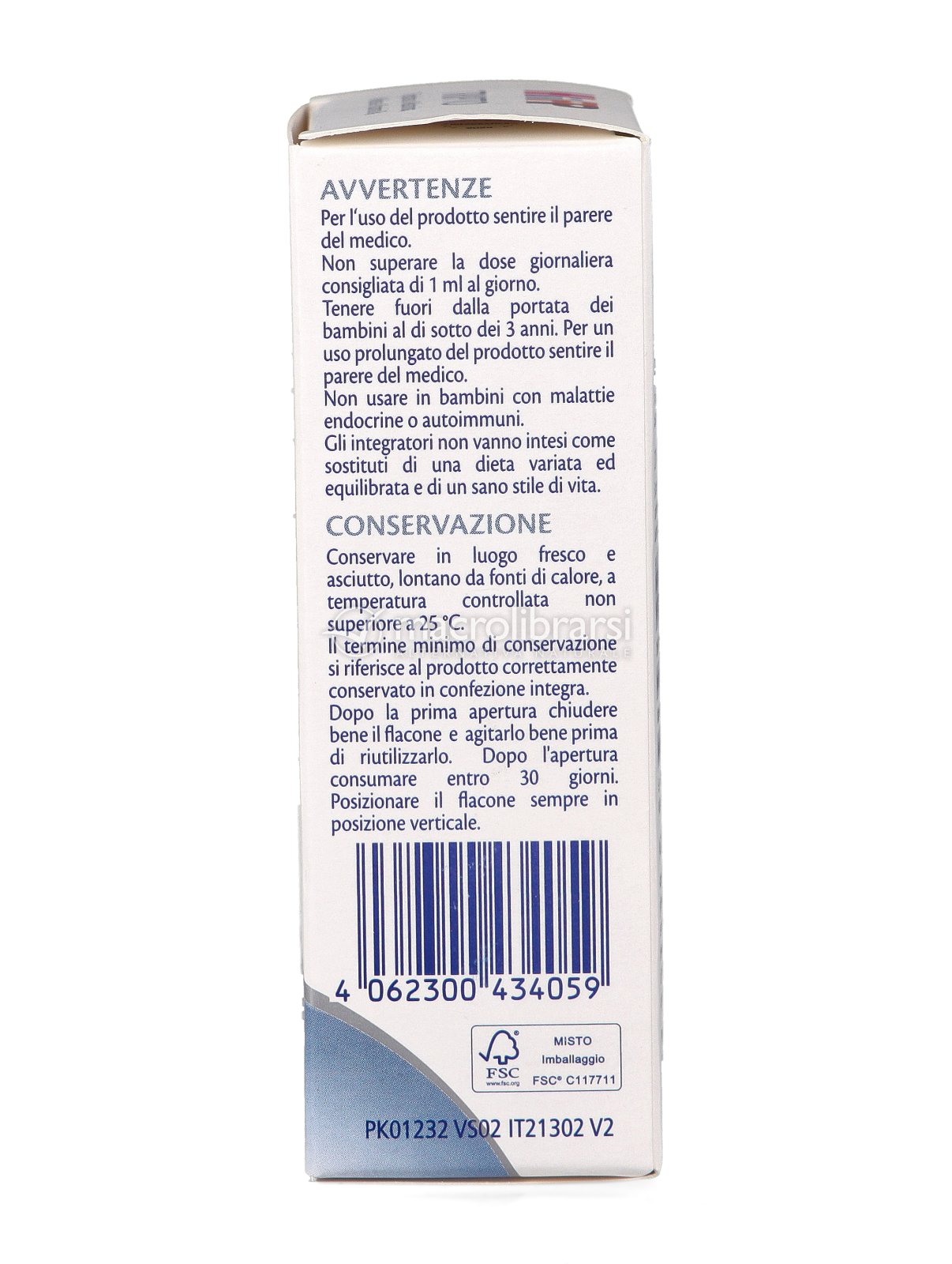 | Avvertenze | Non superare la dose giornaliera consigliata. Gli integratori alimentari non vanno intesi come sostituti di una dieta variata ed equilibrata. Tenere fuori dalla portata dei bambini al di sotto dei tre anni. Non utilizzare in gravidanza e nei bambini o comunque per periodi prolungati senza sentire il parere del medico. |