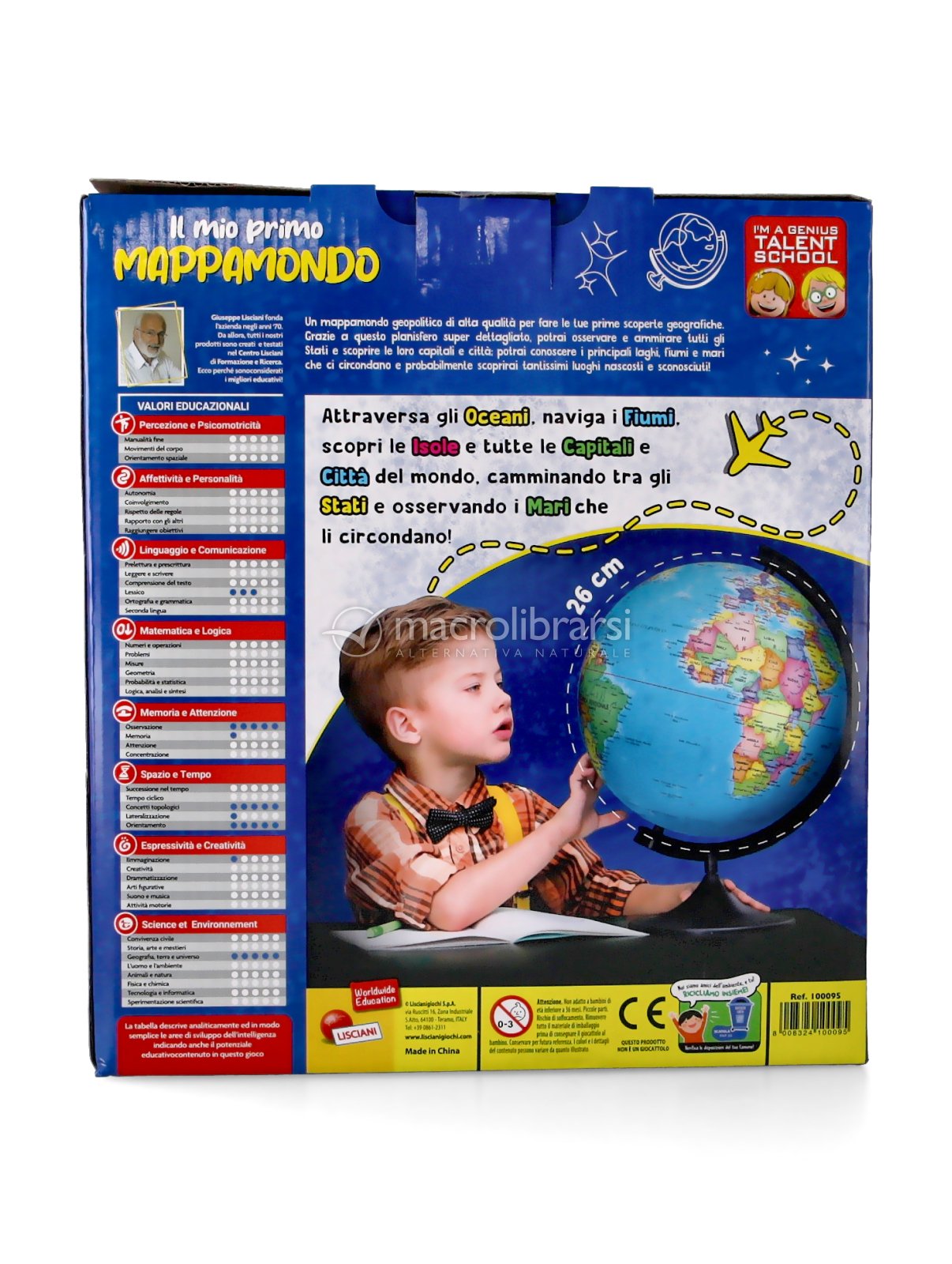 Un fantastico mappamondo geopolitico per iniziare ad apprendere le prime conoscenze sulla geografia e sul mondo.