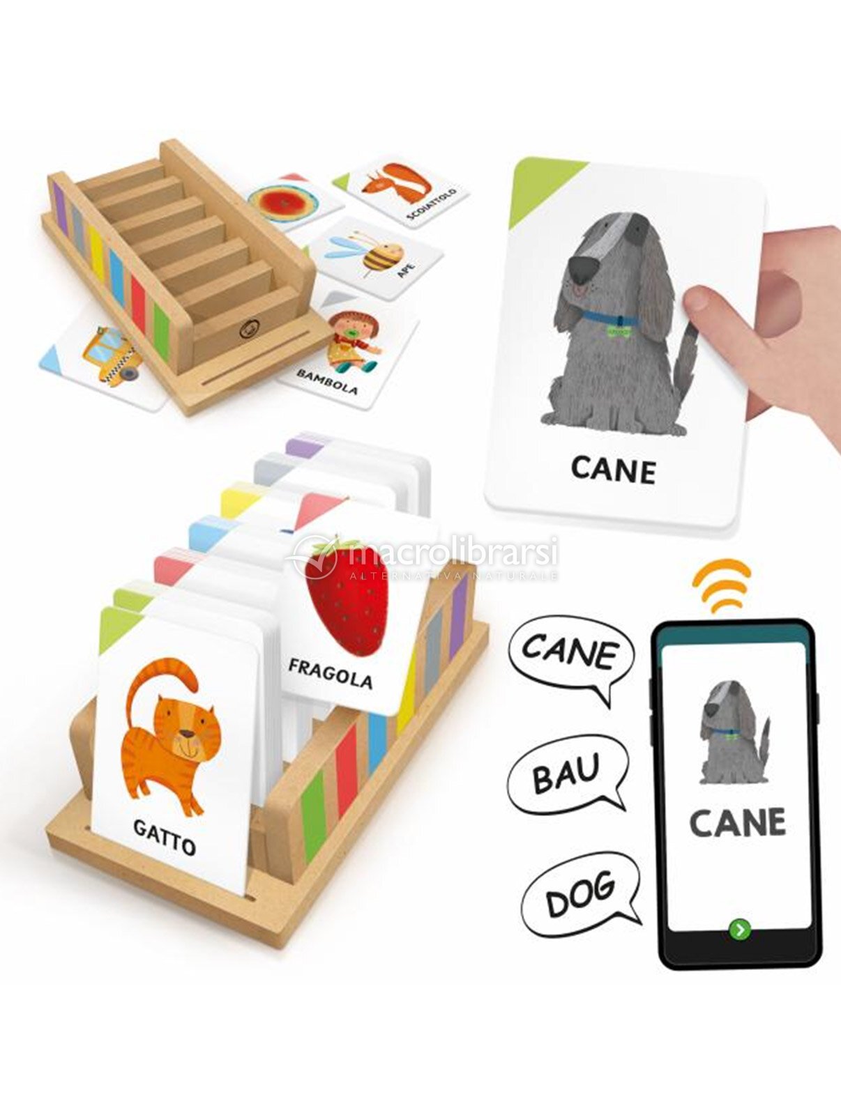 Speciale cofanetto in legno che raccoglie tante flashcards tematiche per imparare tantissime parole nuove associandole alla loro immagine.