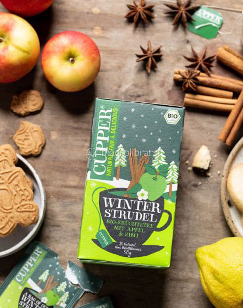 L'infuso di mela e cannella della Cupper è un'ottima tisana invernale dall'aroma delicato. La tisana ha una dose consistente di cannella però rimane delicata nel suo gusto. È da provare per vedere se ci si trova bene con questo tipo di combinazione.