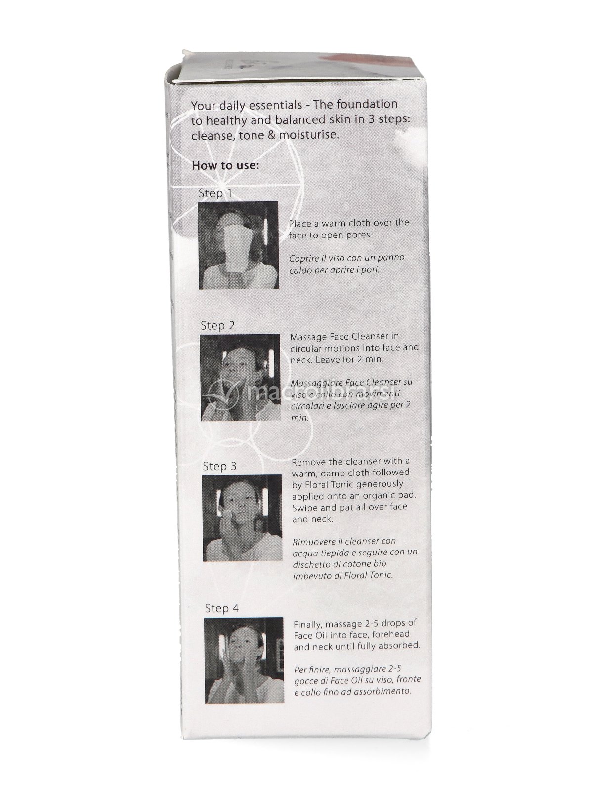 | Confezione | Face Cleanser 15 ml + Floral Tonic 50 ml + Face Oil 10 ml |