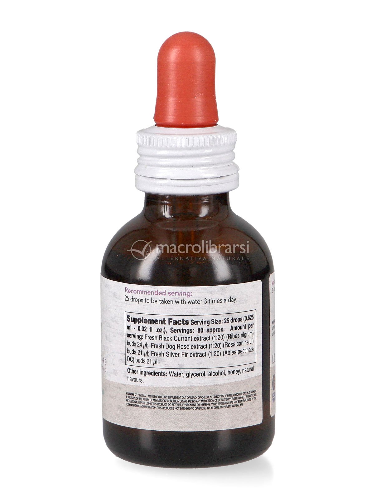 | Disclaimer | Non superare la dose giornaliera consigliata. Gli integratori alimentari non vanno intesi come sostituti di una dieta variata ed equilibrata. Tenere fuori dalla portata dei bambini al di sotto dei tre anni. Non utilizzare in gravidanza e nei bambini o comunque per periodi prolungati senza sentire il parere del medico. Conservare in luogo asciutto e lontano da fonti di calore. Richiudere la confezione dopo l'uso. Macrolibrarsi ricorda l'importanza di seguire uno stile di vita sano e un'alimentazione variata ed equilibrata. |