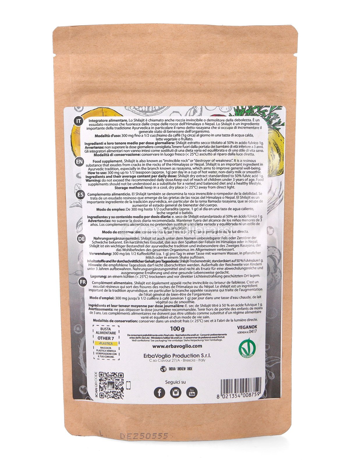 Lo Shilajit Premium di Erbavoglio è un estratto purificato proveniente dalle rocce dell’Himalaya, ottenuto da un essudato naturale che si forma attraverso la lenta decomposizione della materia vegetale. La sua elevata concentrazione di acido fulvico (50%) rende questa polvere particolarmente biodisponibile e ricca di minerali essenziali. Da sempre valorizzato nella tradizione ayurvedica, lo shilajit è noto per il suo contributo al tono fisico, all’energia e al benessere generale.