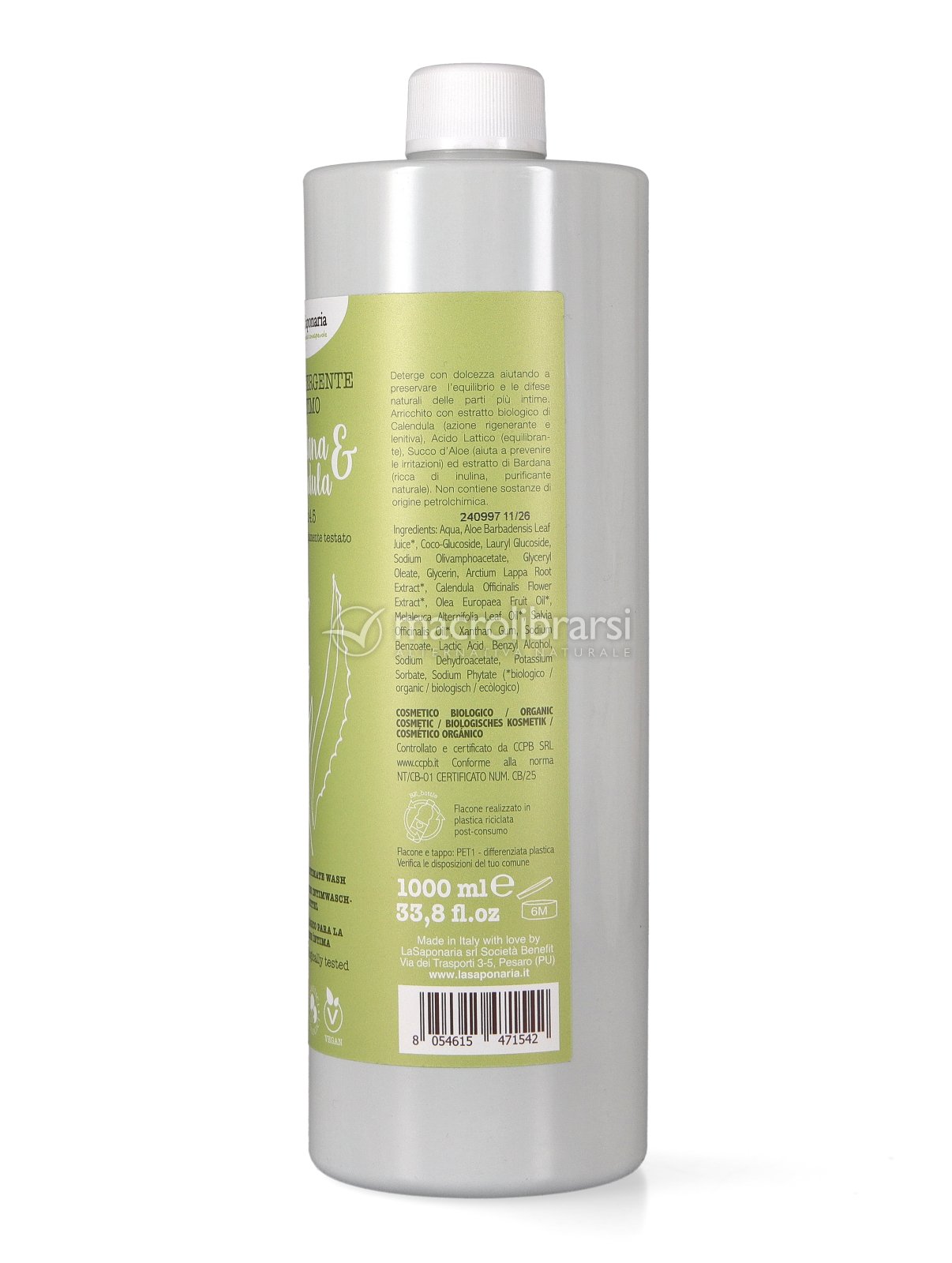 Arricchito con estratto di Calendula (azione lenitiva), Acido Lattico (equilibrante), succo d'Aloe (aiuta a prevenire le irritazioni) e Bardana (ricca di inulina, antibatterico naturale).