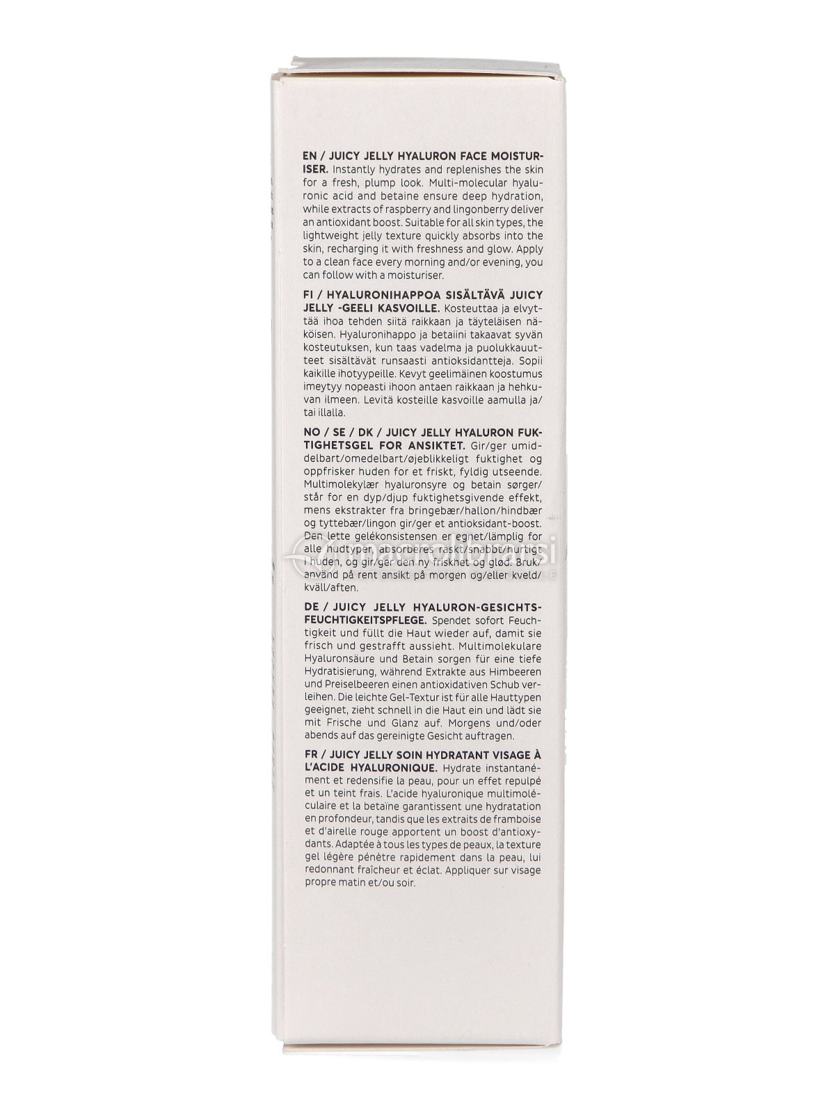 Arricchito con lampone nordico antiossidante, mirtillo rosso e acido ialuronico dall'intensa azione idratante, Juicy Jelly dona un’istantanea freschezza e luminosità alla pelle.
