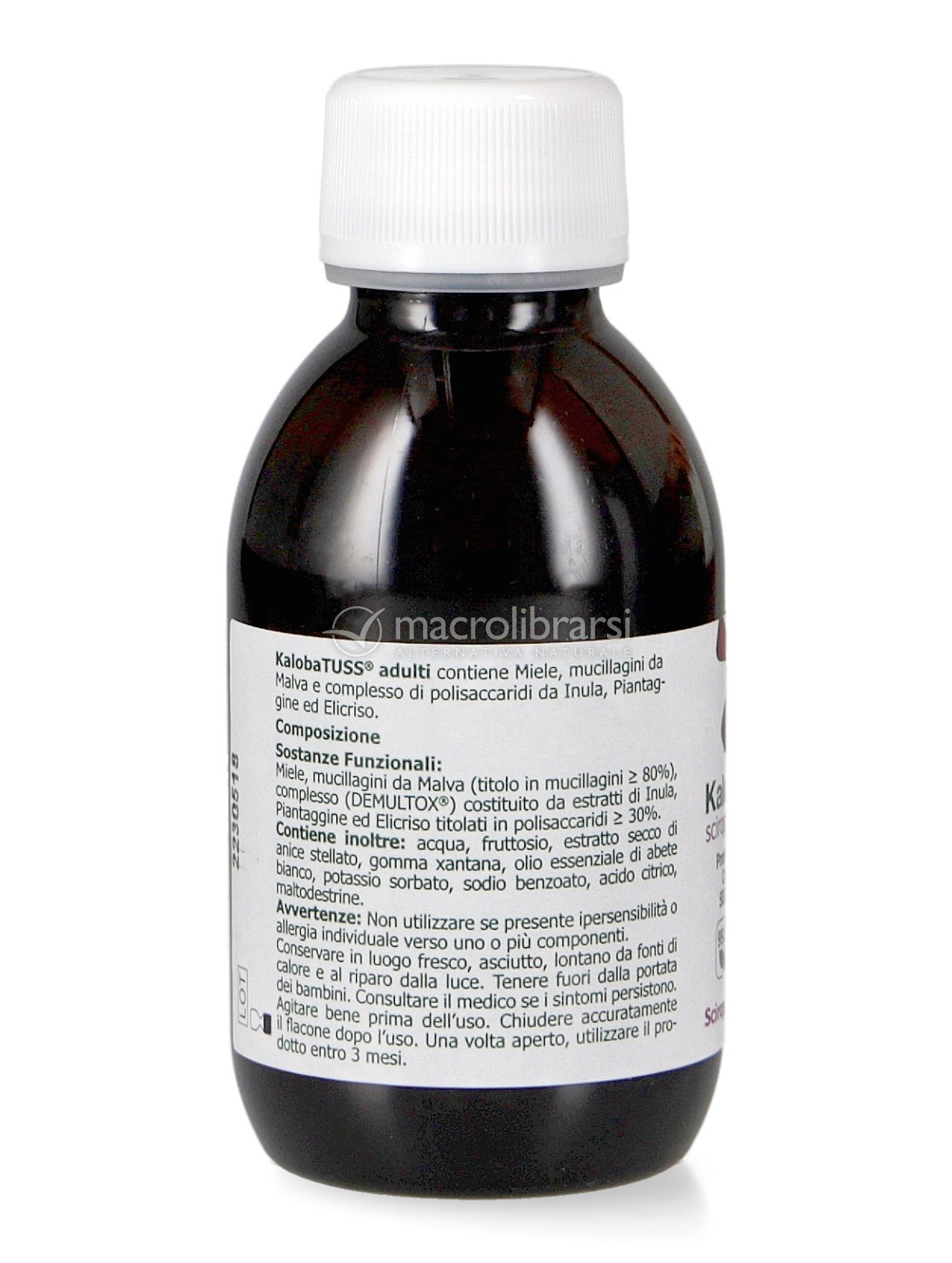 KalobaTUSS® adulti crea un film protettivo sulla mucosa, calmando la tosse e proteggendo le alte vie respiratorie. I componenti di KalobaTUSS® adulti sono una fonte naturale di polisaccaridi e mucillagini, che hanno la capacità di fluidificare il muco in eccesso, riducendo lo sfregamento a livello faringeo che causa la tosse.