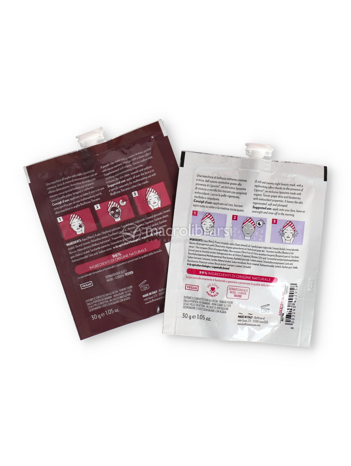 Vinacce e mirtillo bio toscani sono i protagonisti delle due maschere viso contenute nel Kit Luce Viso di Biofficina Toscana: