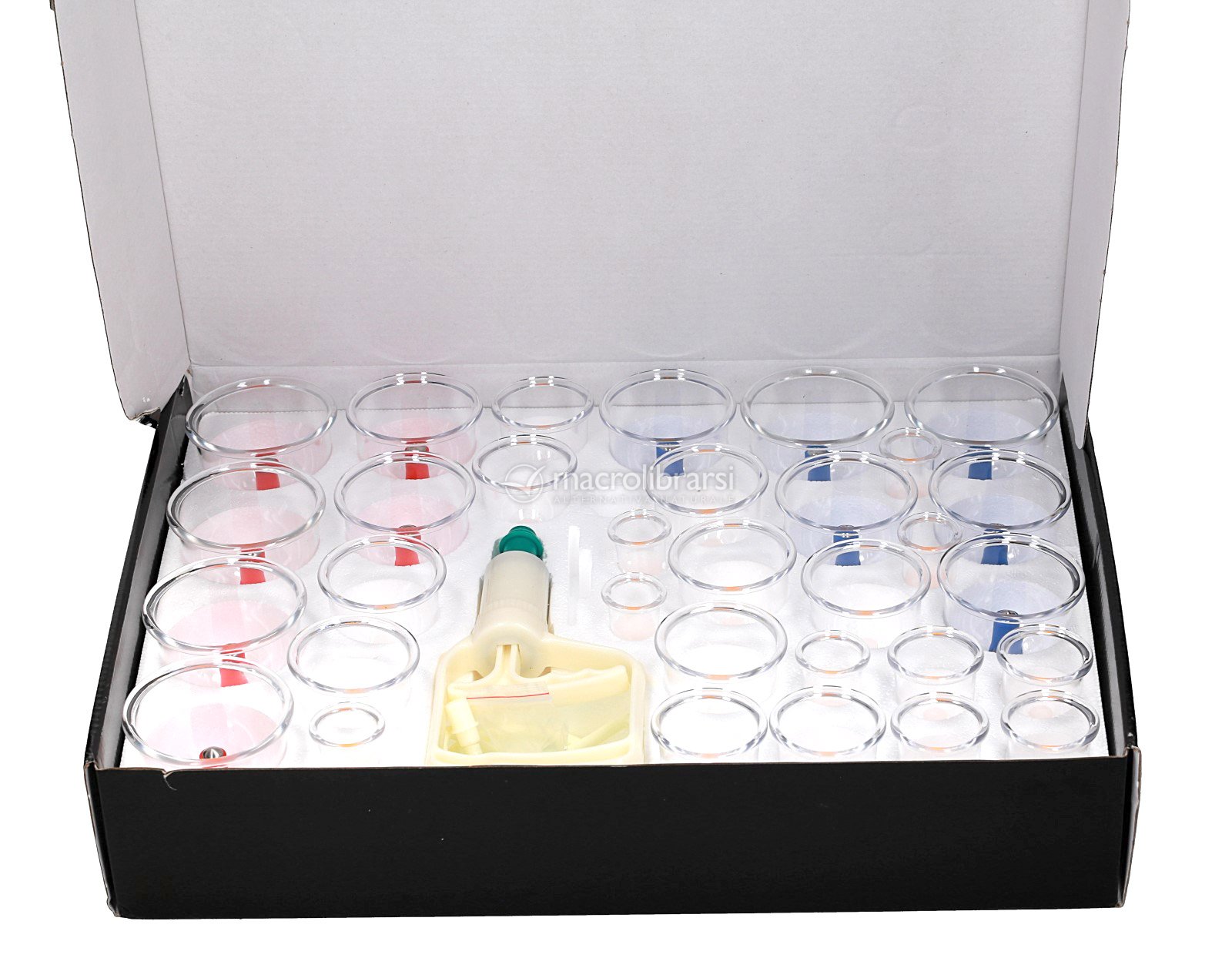 Un kit formato da 32 coppette di misura differente + 1 Pompetta per applicazione ad Effetto Vacuum.