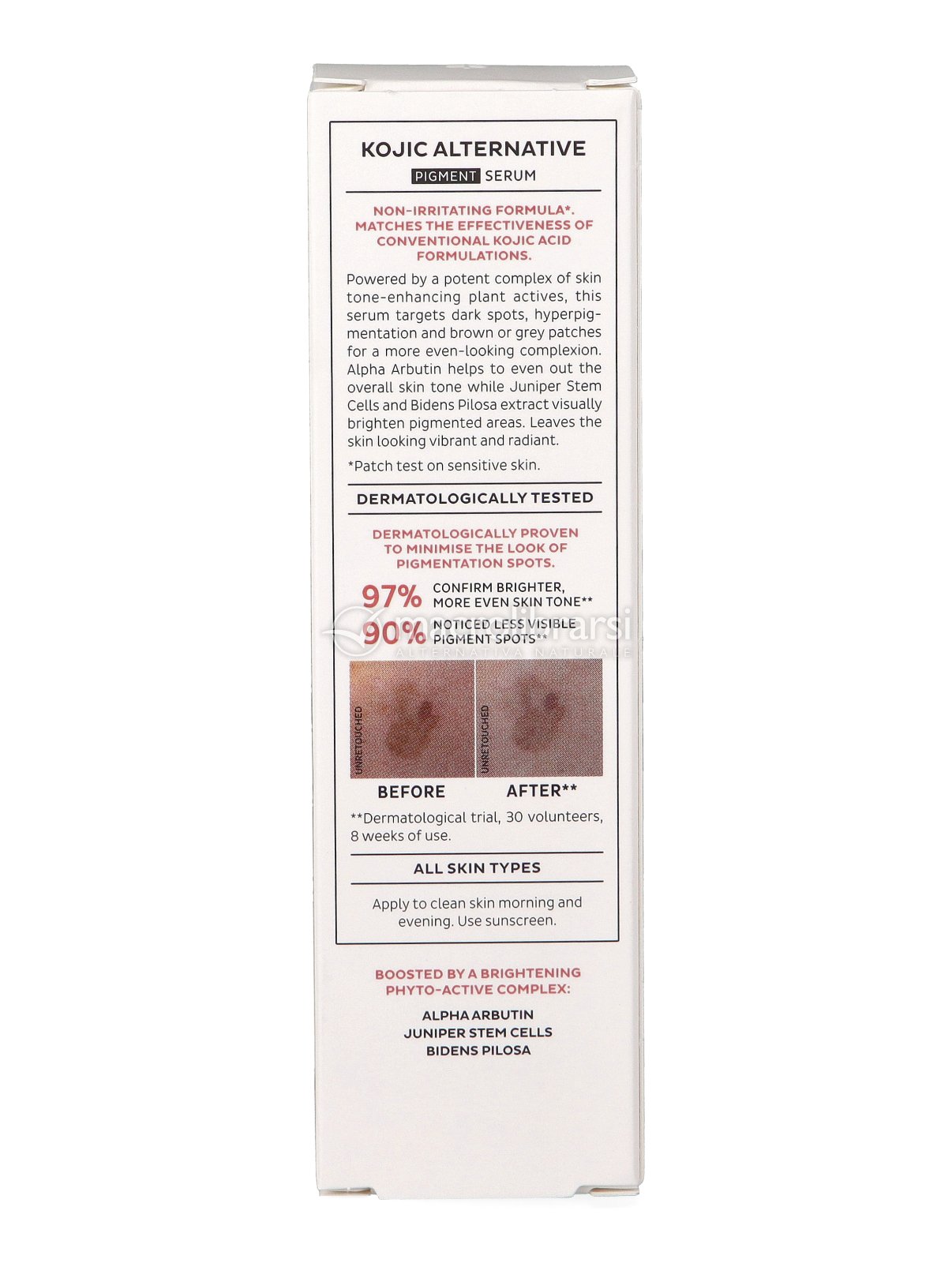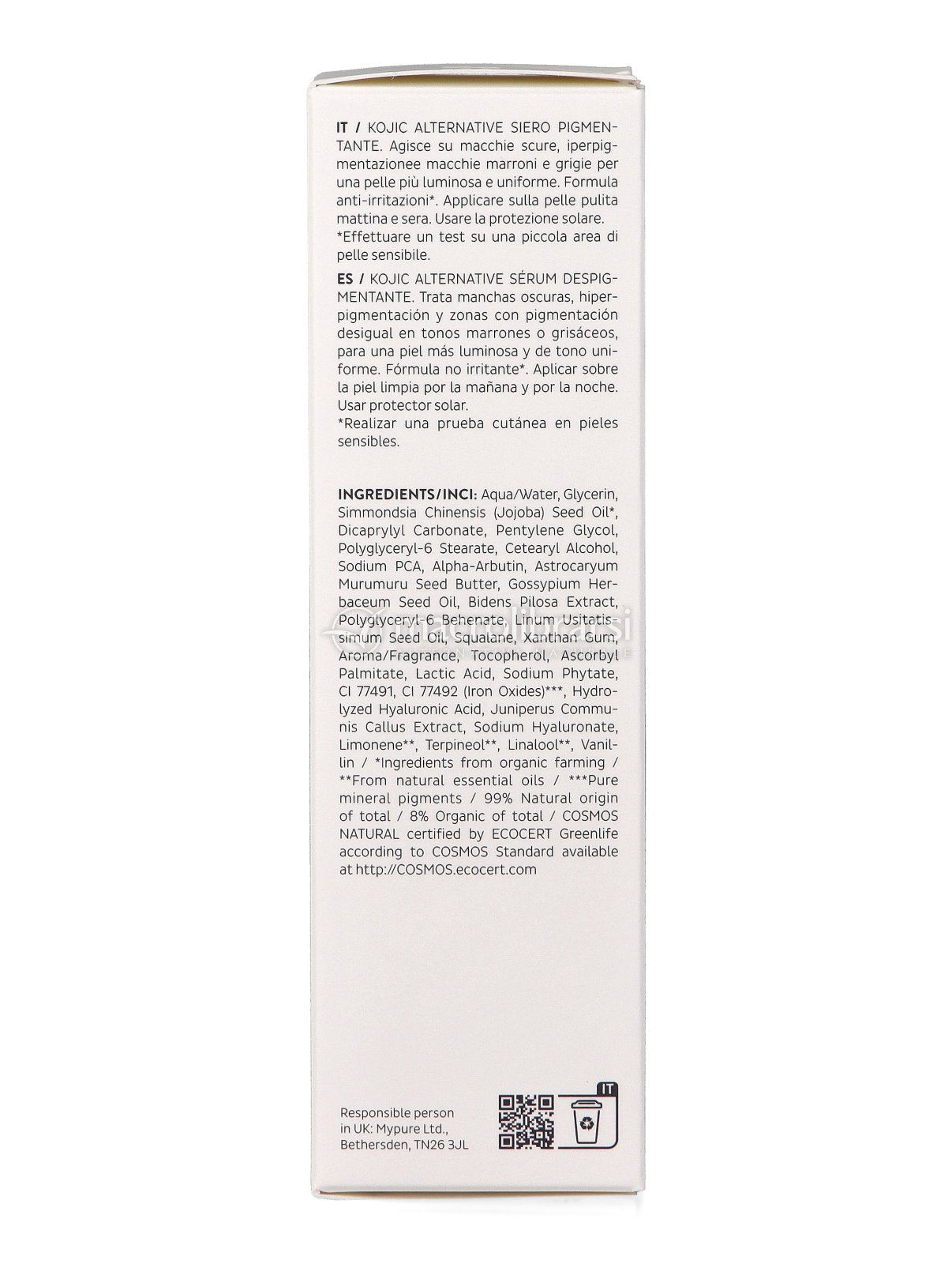 Kojic Alternative Pigment Serum offre risultati paragonabili a quelli dell’acido cogico tradizionale, senza però irritare la pelle sensibile e non aumenta la sensibilità al sole.