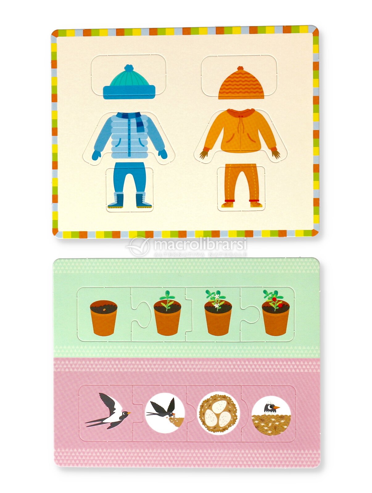 Grazie alle divertenti e coinvolgenti attività proposte, il gioco diventerà un'occasione di apprendimento per il bambino, che, partendo dalla sua curiosità, inizierà a comprendere il ciclo delle stagioni in piena autonomia.