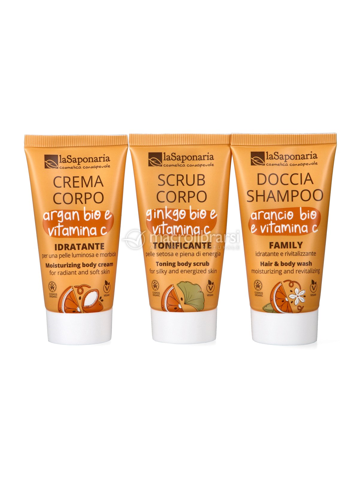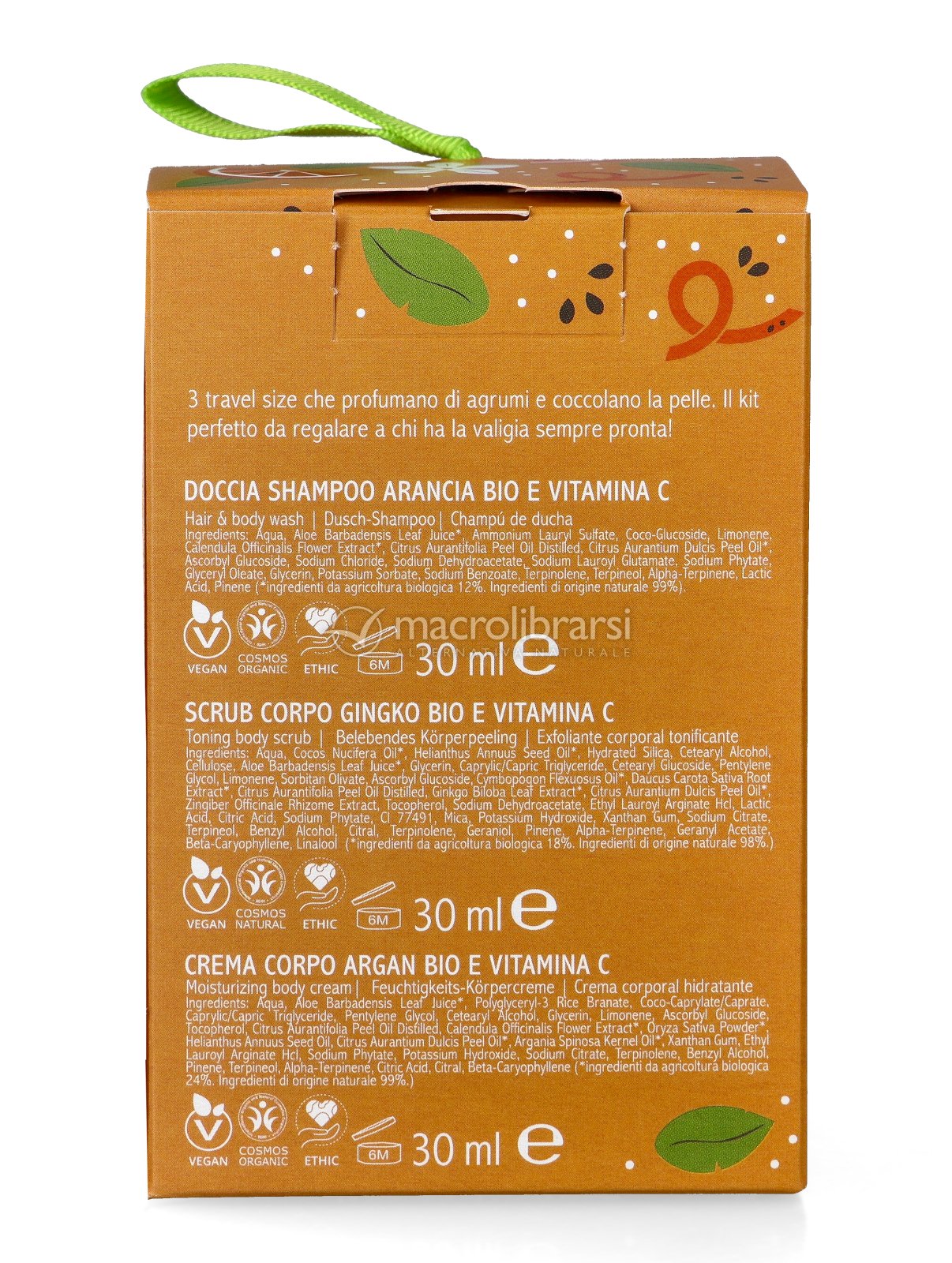 | Confezione | Doccia Shampoo (30 ml) + Scrub Corpo (30 ml) + Crema Corpo (30 ml) |